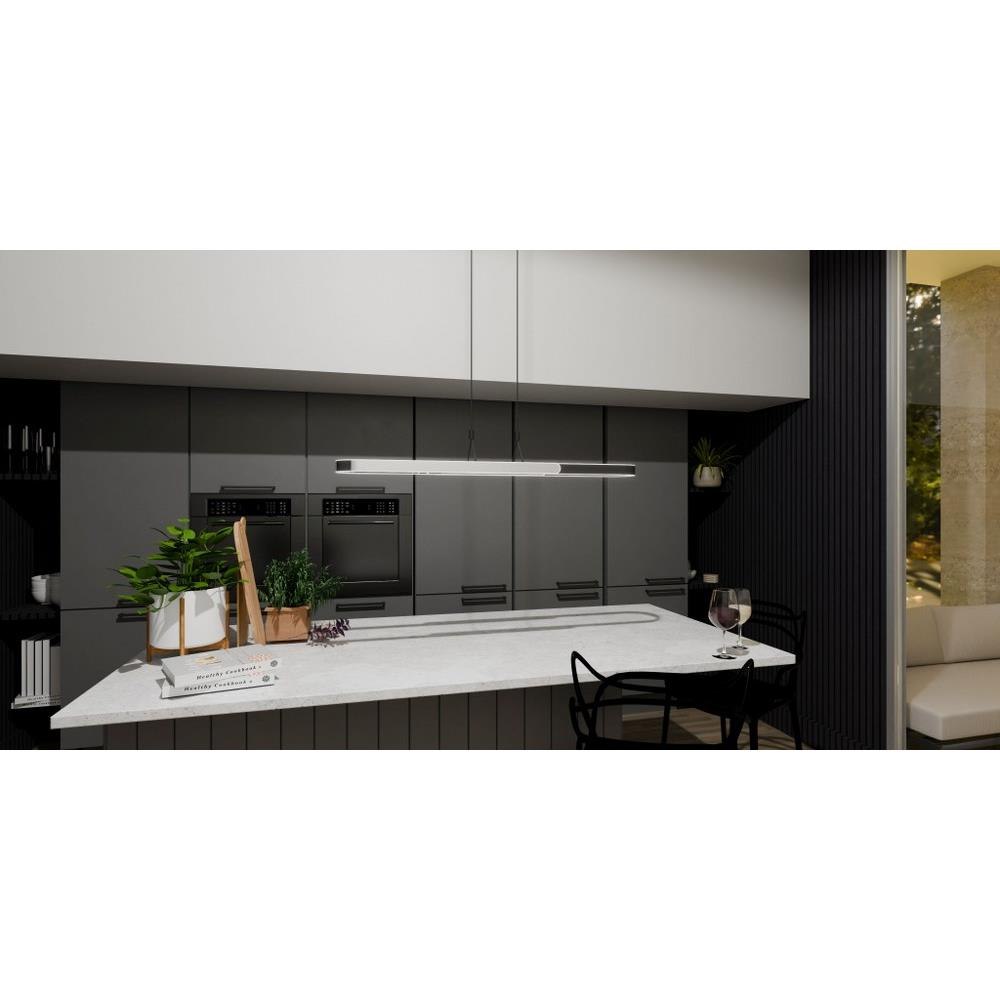 With a striking silhouette and bold, clean lines, the Mira linear chandelier is a beautiful new addition to the popular Platinum by Quoizel collection. The elongated frame features a combination of matte black and brushed nickel for a cool, two-tone effect. An integrated LED light source is included, making Mira a smart choice over any contemporary kitchen island, bar area, or dining room.