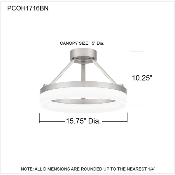 Sleek and striking, the minimalist Rosemount series hypnotizes with a halo-like ring of glowing LED light. Choose from a variety of style options from flush mount to chandelier, all featuring an etched acrylic shade and your choice of either brushed nickel or oil rubbed bronze finish. The chandelier style is suspended from steel cord, reinforcing a modern aesthetic.