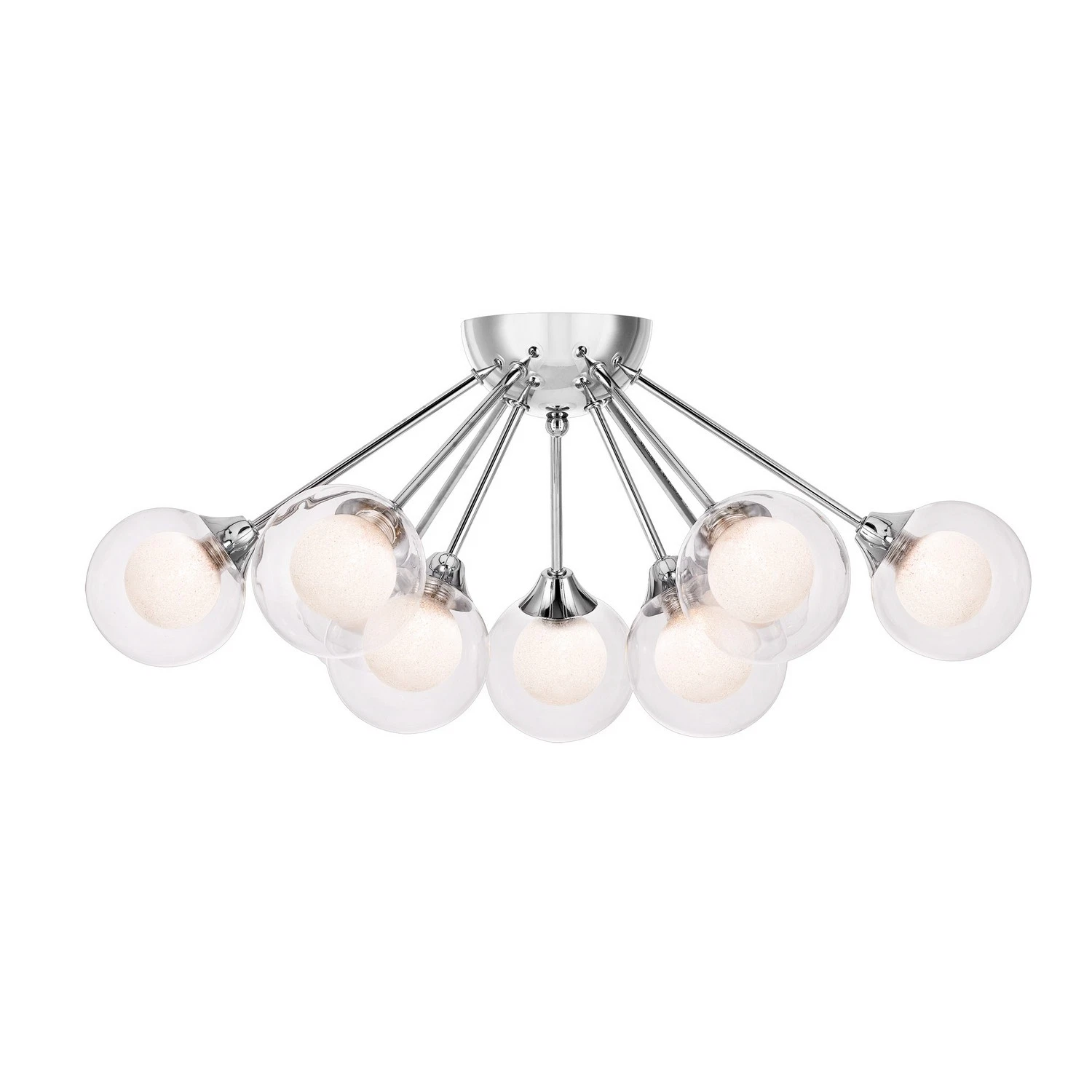 In 1957, the first satellite to orbit Earth took off on a star-studded mission. Shaped like a sphere, with long antennae shooting out from its core, the Sputnik satellite became an unlikely inspiration for mid-century modern designers who reimagined the interstellar orbiter as a chic light. Punctuated by clear globes shooting out in a star-like pattern, the Quoizel Spellbound is textbook sputnik lighting design with an entrancing feature: shimmering ice glass globes encased by outer glass shades that add extra flair to this bewitching fixture. When hung in above your kitchen island or table, guests are sure to fall under the spell of your enchanting new light.