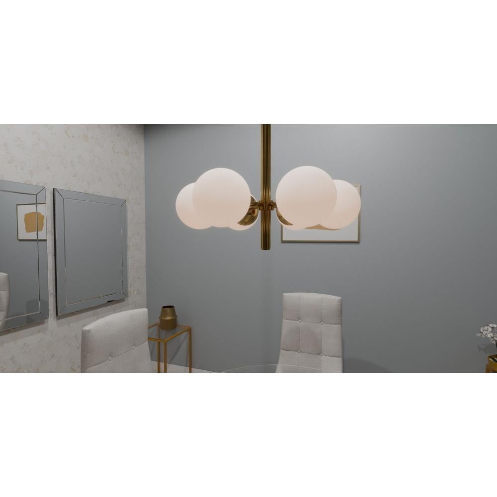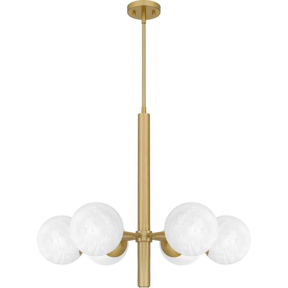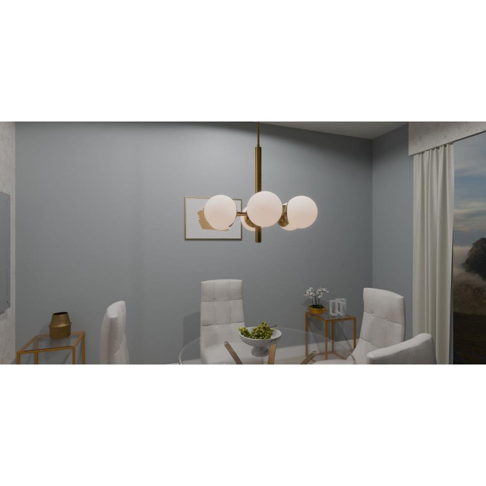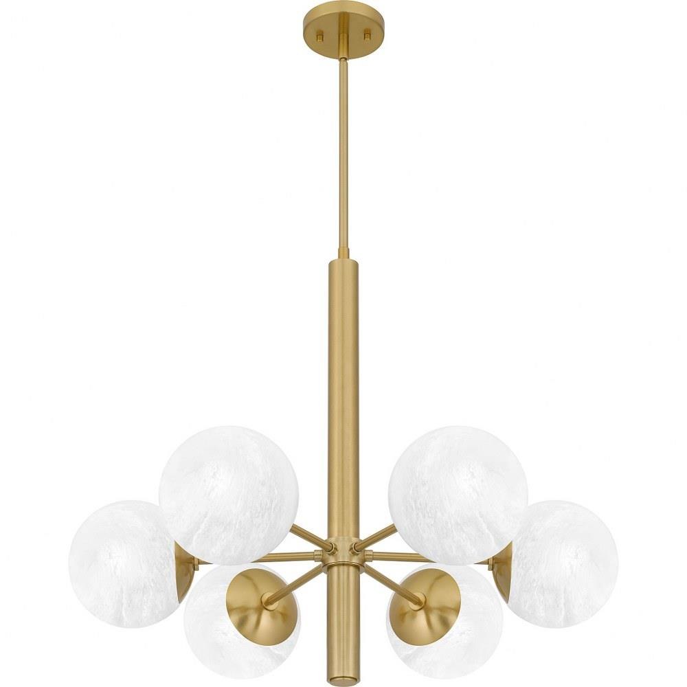 Cloud glass orbs create an exceptionally beautiful glow in the Solei mini globe chandelier. The distinctive silhouette is finished in aged brass, adding luster and luxury to the transitional design. Because the cloud glass is hand made, each globe may vary slightly due to its unique nature. Part of the popular Platinum by Quoizel collection, Solei pairs well with any modern or contemporary space.