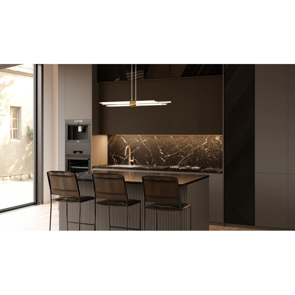 The Talbott island chandelier features a striking modern design with a sleek, minimalist aesthetic. The rectangular canopy contrasts with the series of parallel cylindrical acrylic rods, creating a unique and eye-catching visual. Each rod houses an integrated LED light for maximum light output and energy efficiency. Talbott is available in matte black or brushed gold to suit various home decor styles.