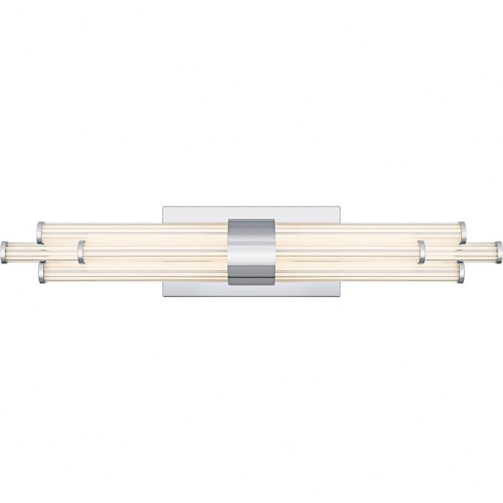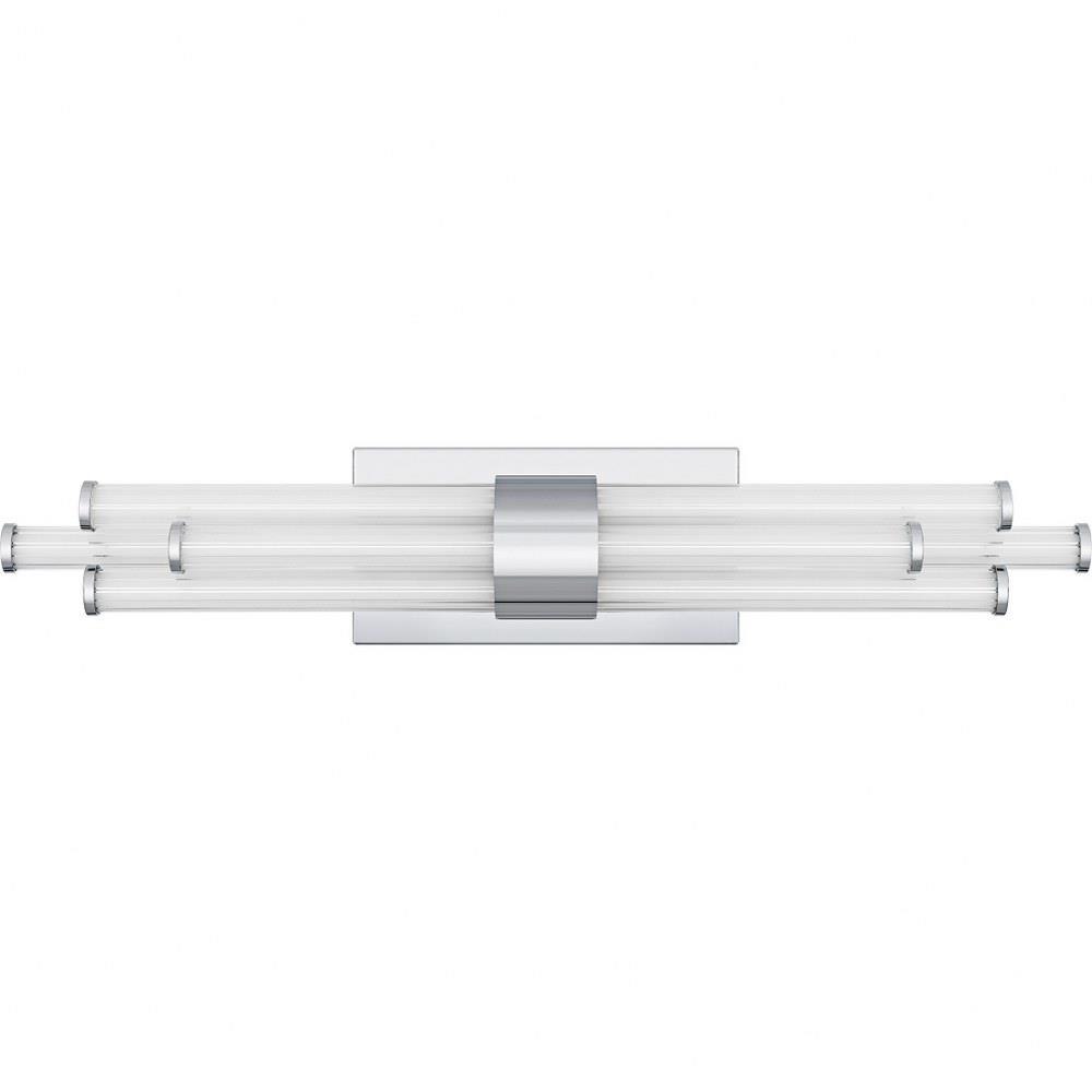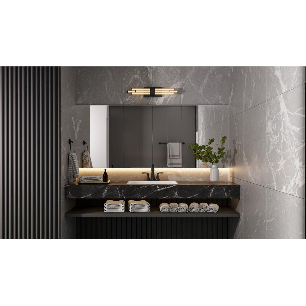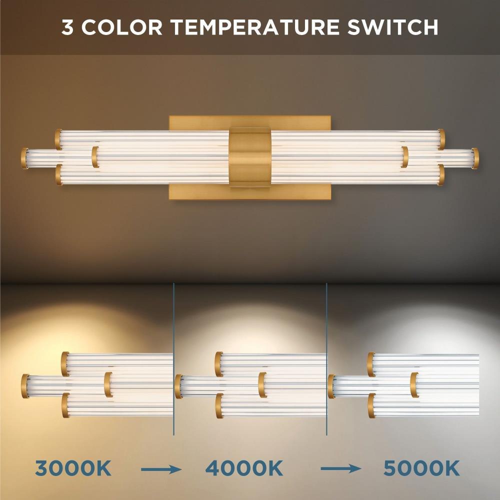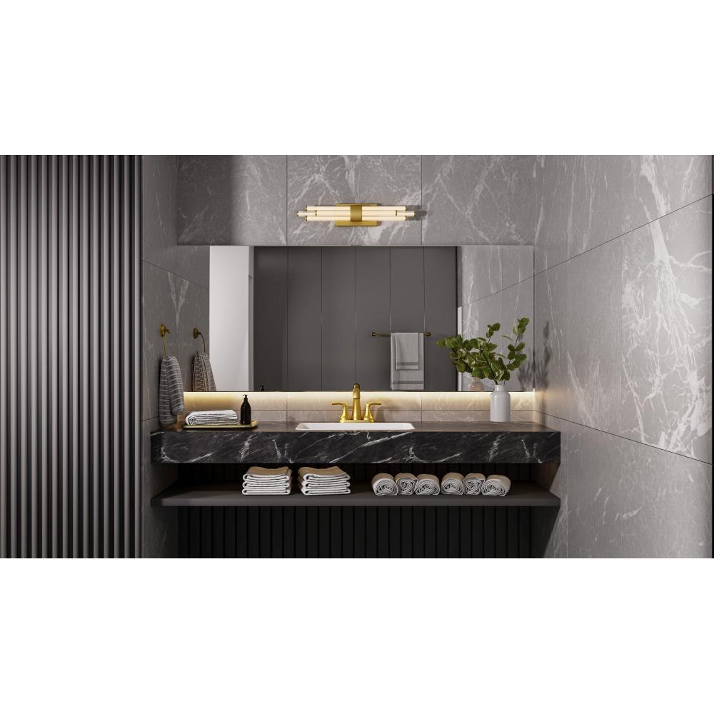 The Talbott bath light features a striking modern design with a sleek, minimalist aesthetic. The rectangular backplate contrasts with the series of parallel cylindrical acrylic rods, creating a unique and eye-catching visual. Each rod houses an integrated LED light for maximum light output and energy efficiency. Talbott is available in matte black, brushed gold, and polished chrome to suit various bathroom vanity styles. This fixture also includes a CCT switch, allowing you to easily customize the brightness of the light to your desired setting.