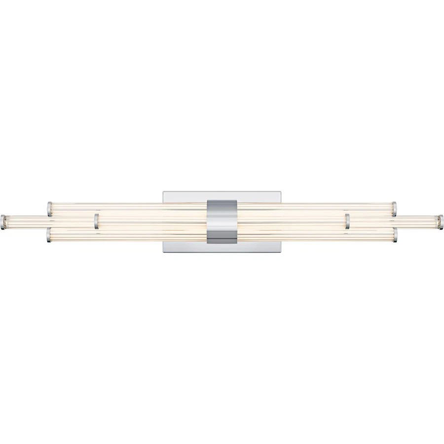 The rectangular backplate contrasts with the series of parallel cylindrical acrylic rods, creating a unique and eye-catching visual. Each rod houses an integrated LED light for maximum light output and energy efficiency.