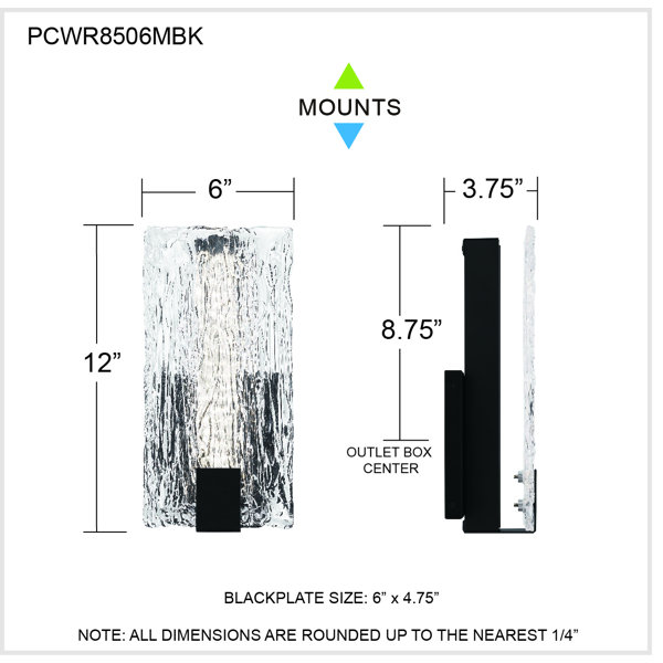 12'' H X 6'' W X 3.75'' D