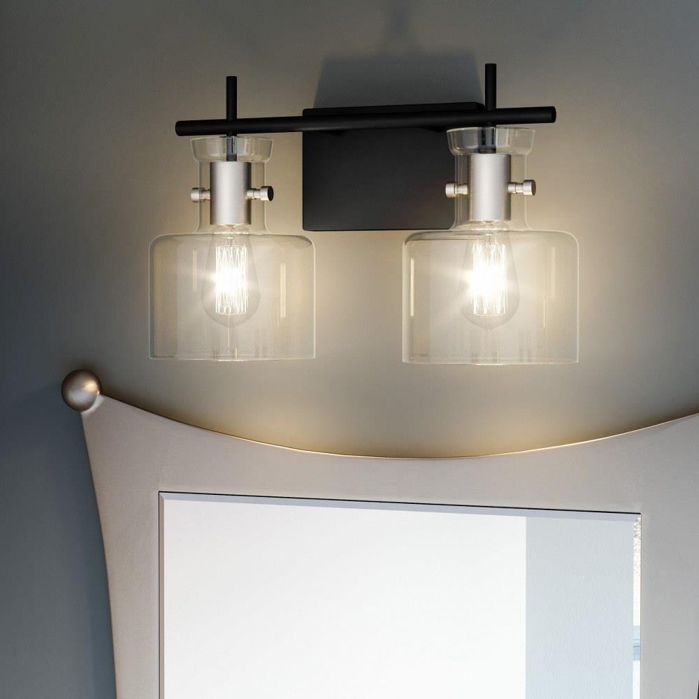 A matte black finish includes a hint of shine, Courtesy of brushed aluminum accents, In the Pensbury bath light. With clear glass shades to maximize radiance, The light comes in either three or four bulbs. The black-and-silver colorway adds a refined touch to modern bath spaces.Matte black finish and brushed aluminum accents add a hint of shine.Clear glass shades maximize radiance.Durable steel construction is built to last and offers a clean, polished look.Adds a refined touch to transitional, Industrial, Contemporary, Or modern spaces.Install fixture facing downward for optimal light output.Uses (2) 100-watt medium base bulb (not included).Fixture is dimmable when paired with dimming-compatible bulbs.