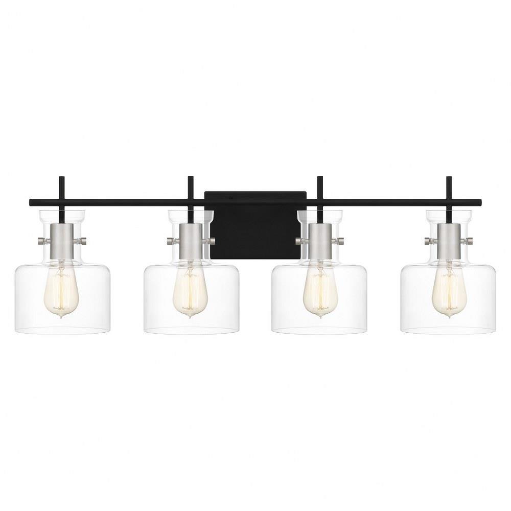 A matte black finish includes a hint of shine, Courtesy of brushed aluminum accents, In the Pensbury bath light. With clear glass shades to maximize radiance, The light comes in either three or four bulbs. The black-and-silver colorway adds a refined touch to modern bath spaces.Matte black finish and brushed aluminum accents add a hint of shine.Clear glass shades maximize radiance.Durable steel construction is built to last and offers a clean, Polished look.Adds a refined touch to transitional, Industrial, Contemporary, Or modern spaces.Install fixture facing downward for optimal light output.Uses (4) 100-watt medium base bulb (not included).Fixture is dimmable when paired with dimming-compatible bulbs.