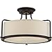 • Quoizel Rigel Semi-Flush Mount Ceiling Light Fixture, 18 Inch 3-Light 100W Western Bronze Hanging Light with Beige Fabric & Frosted Glass Shade for Hallway, Kitchen, Bedroom, Living Room or Office
