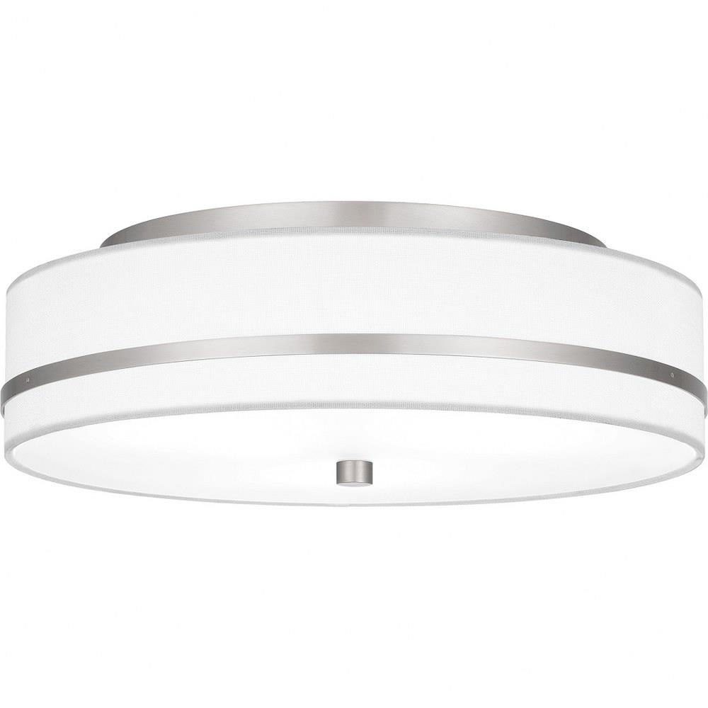 Illuminate your home with the clean, transitional styling of Belotte. The flush mount ceiling light features an off-white fabric shade, paired with simple metal accents in your choice of brushed nickel or matte black. The result is a classic, minimalist design - perfect for a variety of interior spaces.