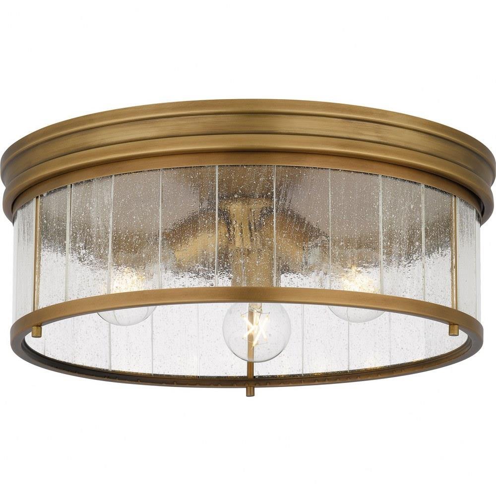 The Theodora flush mount light adds a subtle touch of style to any entryway or living space. This classic close-to-ceiling light has a clear seedy glass shade surrounded by a weathered brass frame for a hint of shine. With its versatile styling, Theodora is an ideal choice for a variety of styles and settings in your home.