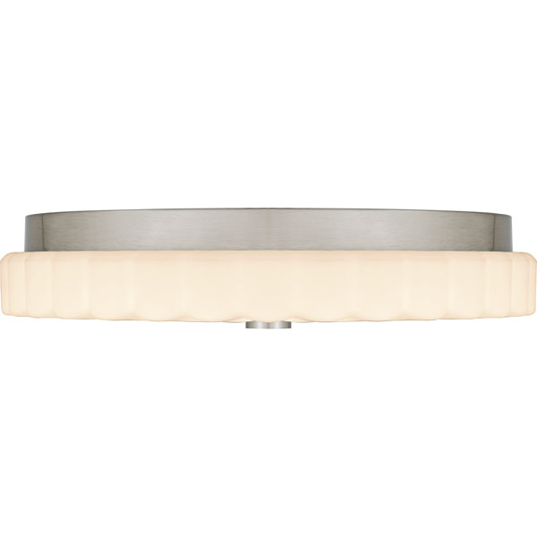 The Cherbury flush mount light infuses modern style into any setting with its sleek design and opal etched ribbed glass. Available in brushed nickel, brushed gold, or matte black finishes, Cherbury offers versatile options to complement your decor. Equipped with a three-way CCT switch, this fixture allows you to easily customize the brightness to your desired setting, ensuring the perfect ambiance for any occasion.