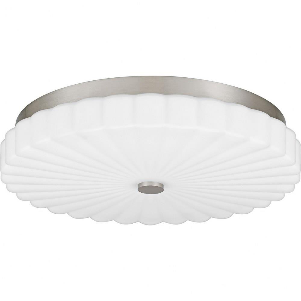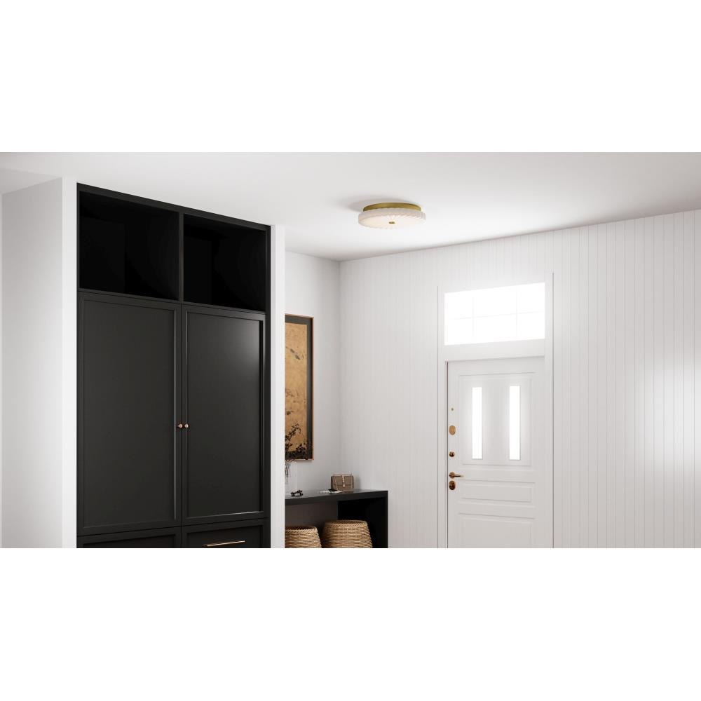 The Cherbury flush mount light infuses modern style into any setting with its sleek design and opal etched ribbed glass. Available in brushed nickel, brushed gold, or matte black finishes, Cherbury offers versatile options to complement your decor. Equipped with a three-way CCT switch, this fixture allows you to easily customize the brightness to your desired setting, ensuring the perfect ambiance for any occasion.