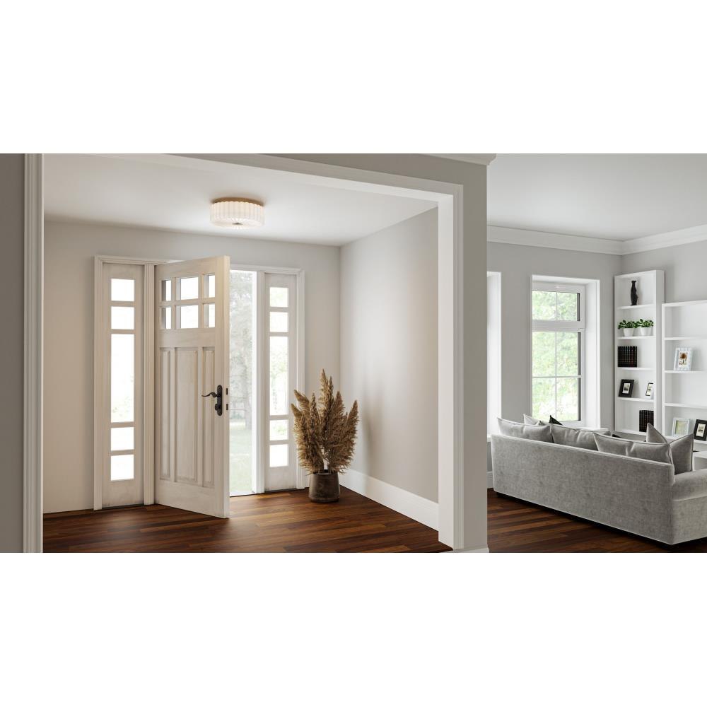 Transform your space with the Oberman flush mount, a sophisticated fixture that combines updated traditional design with versatile customization. The opal etched ribbed glass shade exudes a soft, ambient glow, enhancing any room with its timeless charm. Oberman includes three interchangeable knob options – matte black, brushed nickel, and brushed gold – allowing you to easily match the light to your décor or update the look as desired.