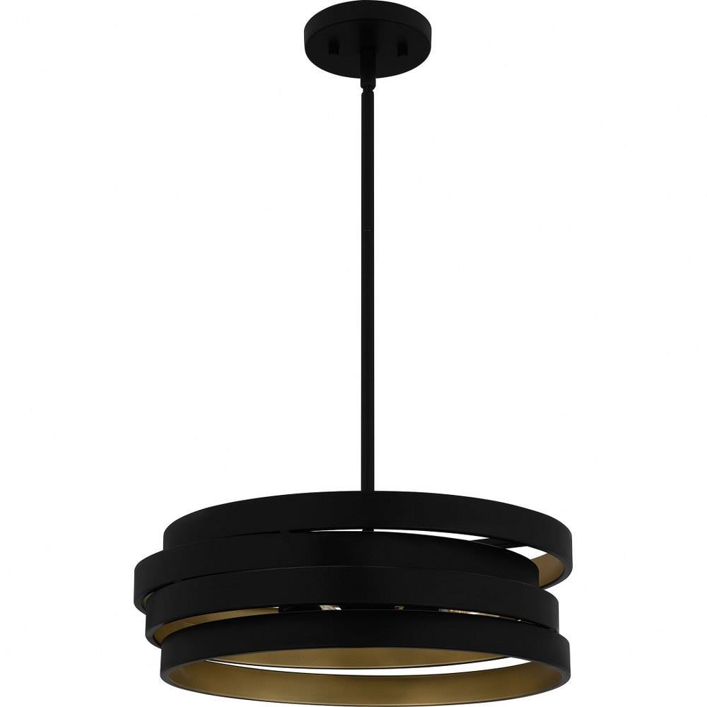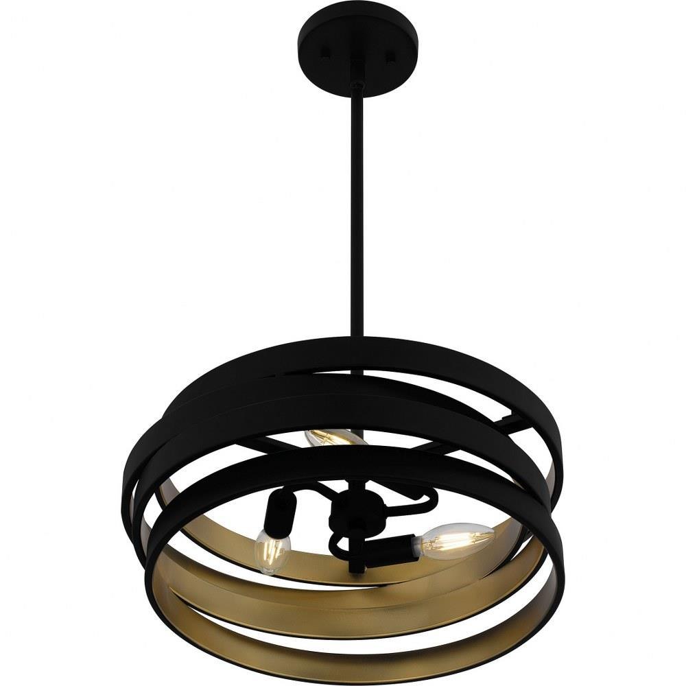 Matte black and gold make a beautiful, modern industrial pairing in Berner. The pendant light features a geometric silhouette with concentric black metal bands, painted gold on the inside for a pop of shine. Hang this versatile design in a range of spaces: entryways, bathrooms, home offices, and more.
