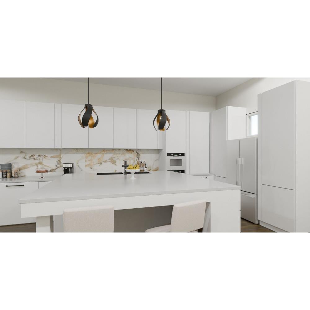 Kiko features a bold, geometric design that makes a modern statement in any room. The open silhouette features a two-tone design: choose from brushed weathered brass with white inside or matte black with gold inside. Whichever color palette you choose, Kiko is available as a semi-flush mount or pendant light and is sure to impress in a variety of interior spaces.