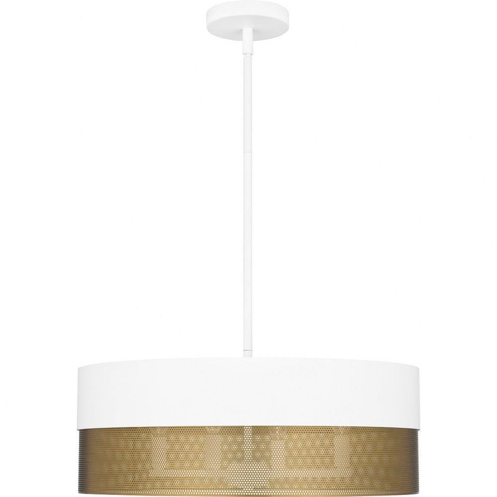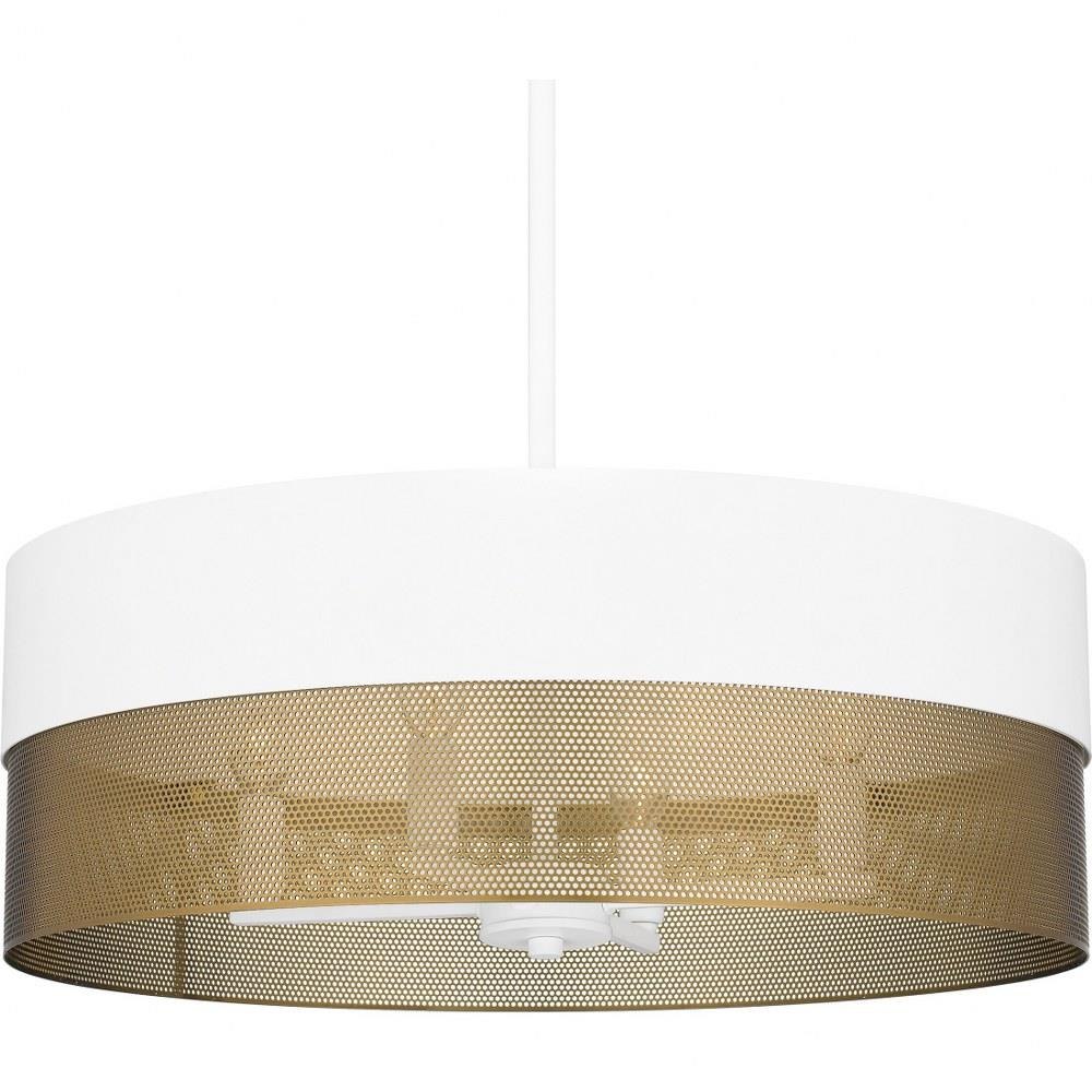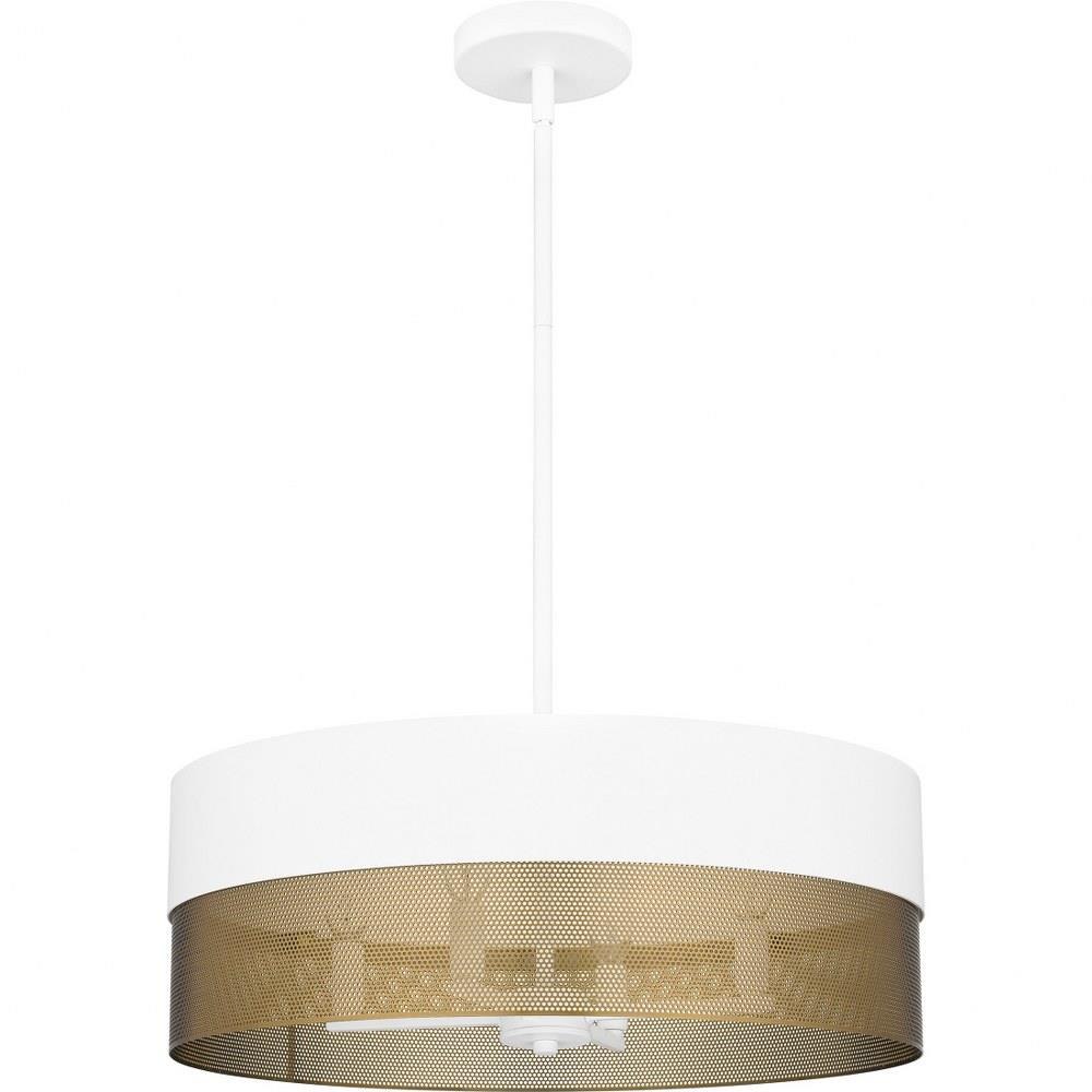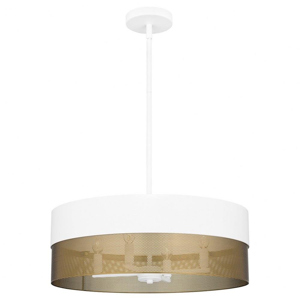 With a two-tone design and industrial styling, Alani pendant lights make a true statement in any space. Available in either matte black or matte white, the drum silhouette incorporates a perforated gold metal shade that adds a unique textured effect. With their versatile design, these oversized pendants look great over a table, in a bedroom, or in a living room area.