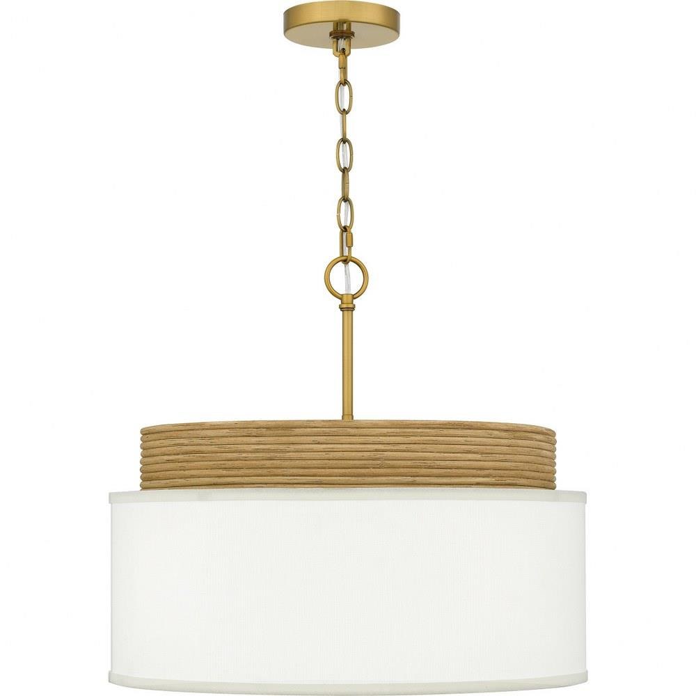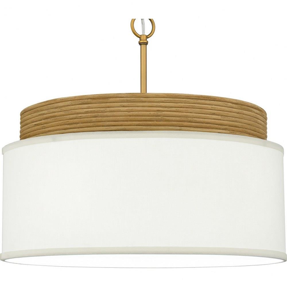 With its white linen fabric shade and real rattan detailing, the Malia pendant light exemplifies modern coastal design through the use of natural elements. A brushed gold finish completes the look, adding a subtle hint of luster to the design. Malia's oversized drum silhouette lends itself beautifully to a variety of interior spaces from living room to bedroom.
