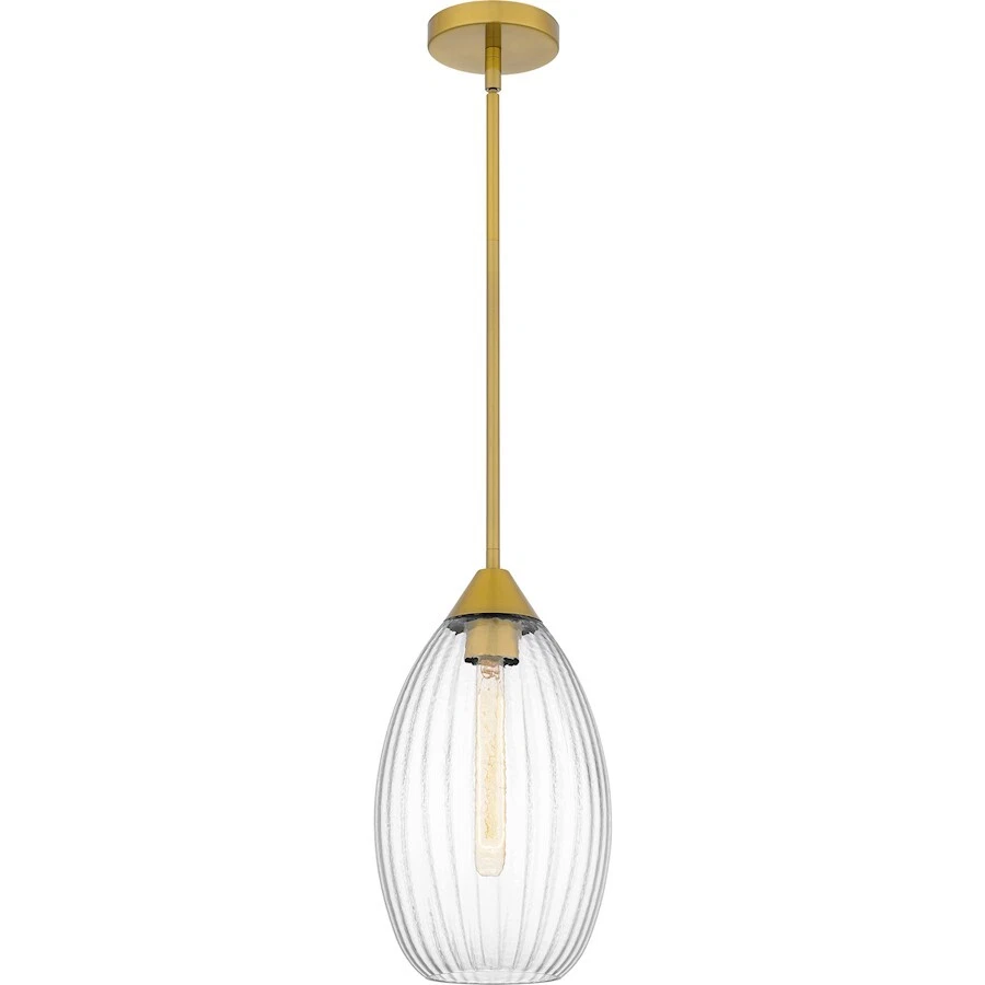 Quoizel Marza 1Lt Mini Pendant, Gold/Clear Hammered Ribbed Glass - QPP6756BRG
