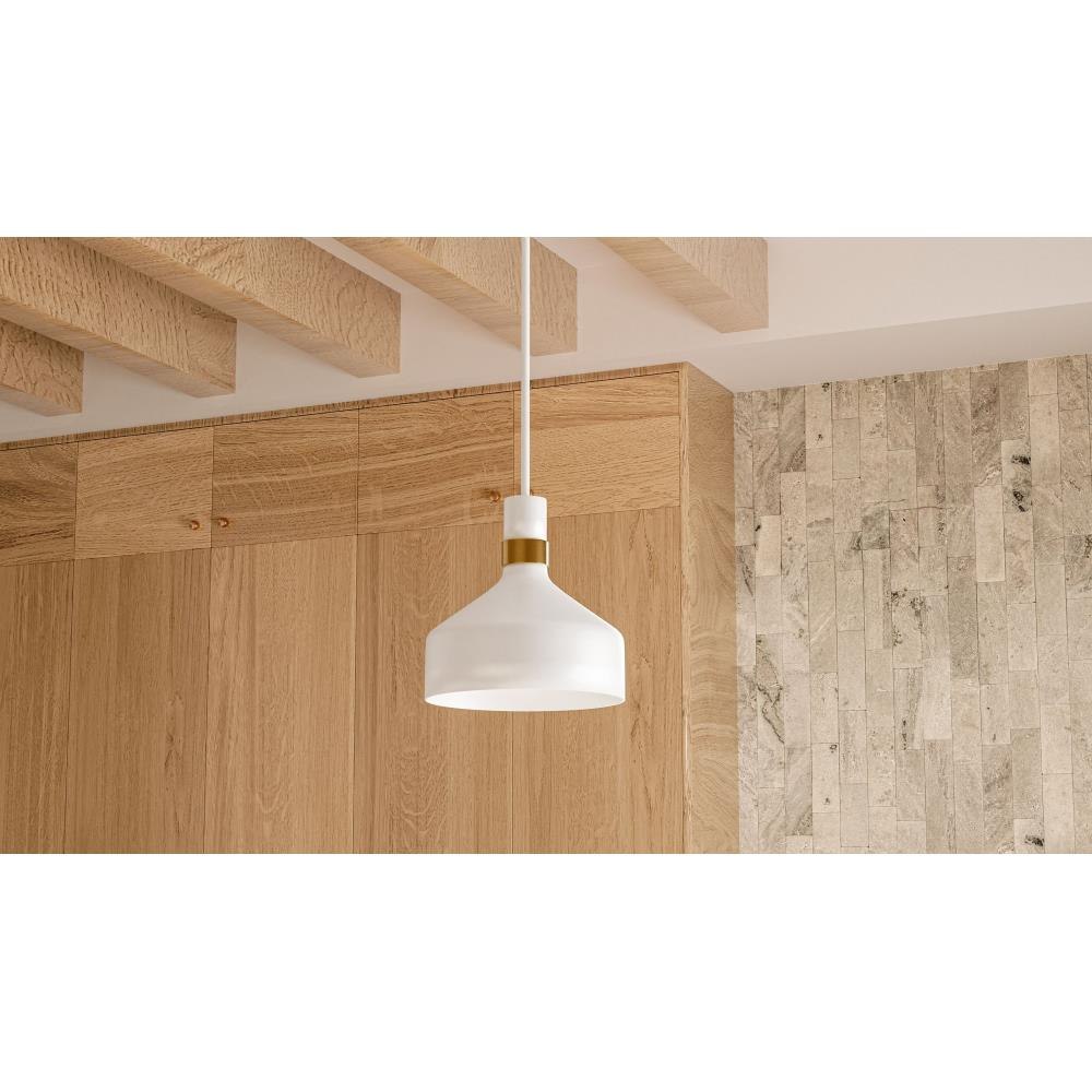 Elevate your space with the Arbor mini pendant, where modern design seamlessly blends with industrial flair. This chic fixture showcases a sleek metal shade available in either matte black or matte white, each adorned with a subtle gold band for a hint of sophistication. Perfect for adding a touch of style to any setting, the Arbor mini pendant is ideal for illuminating a kitchen island, bar area, or office space.