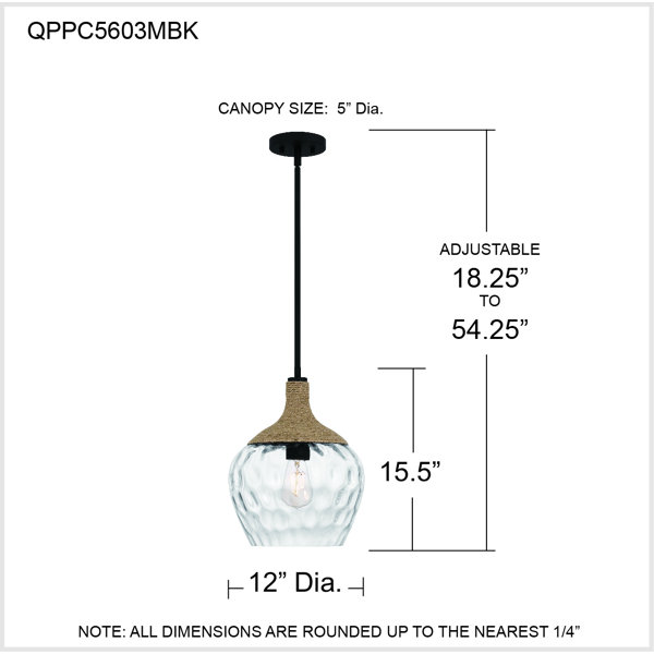This coastal pendant light lets you add a warm, welcoming glow to your kitchen island, entryway, or living room. It has a frosted glass dome shade secured with a plate steel holder in a neutral black hue, wrapped in a rustic brown twine. Up top, it hangs from a sloped ceiling-compatible canopy and a length of adjustable-height Downrod. Best of all, it works with a dimmer switch, so it's easy to set just the right mood wherever you add it. This fixture accommodates a single standard bulb (sold separately). Safe to use in damp locations.