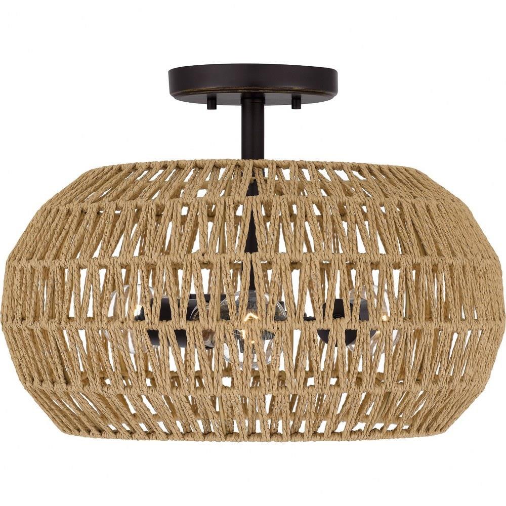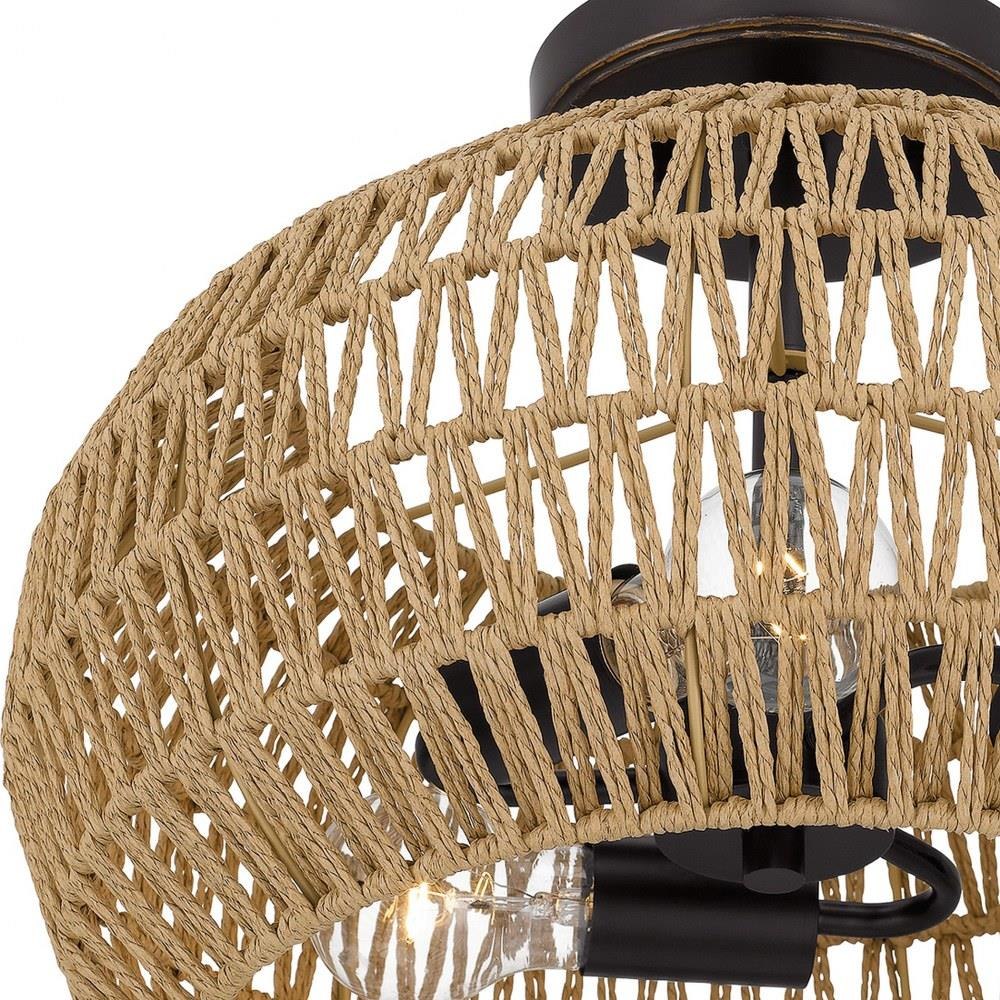 Bohemian and beachy. The Casablanca semi-flush mount instantly draws the eye upward with its woven pattern and palladian bronze finish. In a bedroom, Casablanca creates a romantic aesthetic; in a common space, it adds warm and welcome ease.Palladian bronze finish adds a warm and welcome contrastNatural paper rope shade adds a beachy, bohemian vibeDurable steel construction is built to last and offers a clean, polished lookIdeal for a a variety of transitional, bohemian, coastal, or global interiorsProducts that use natural materials are perfect for those seeking the aesthetics of natural variations.