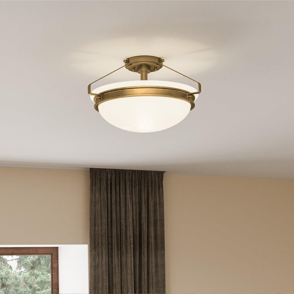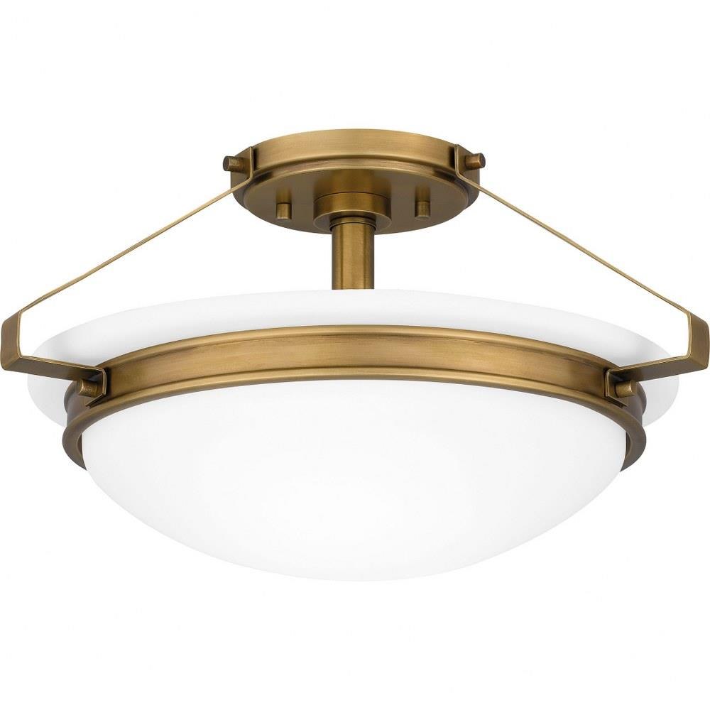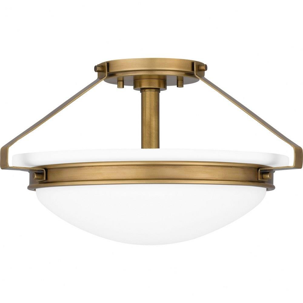 The Elderwood semi-flush mount adds traditional style to a wide range of spaces, from foyers to primary bathrooms. The matte black colorway includes an etched seeded glass shade. Or, opt for an opal etched shade with a handsome, weathered brass finish.Matte black finish adds bold contrastEtched seeded glass shade offers visual intrigue and illuminationDurable steel construction is built to last and offers a clean, polished lookTransitional silhouette lends itself to a variety of interior settingsIdeal for use in any foyer, hallway, bedroom, living room, or office.