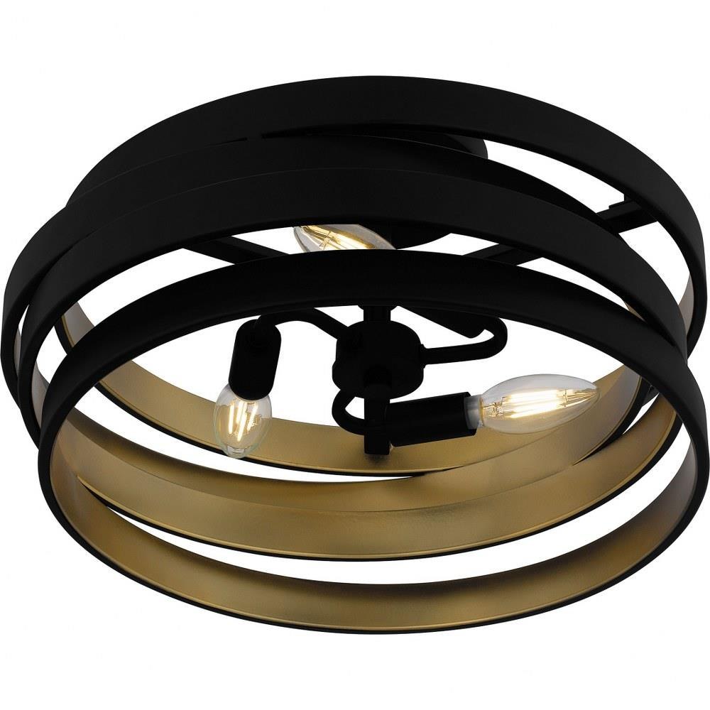 Matte black and gold make a beautiful, modern industrial pairing in Berner. The semi-flush mount light features a geometric silhouette with concentric black metal bands, painted gold on the inside for a pop of shine. Hang this versatile design in a range of spaces: entryways, bathrooms, home offices, and more.