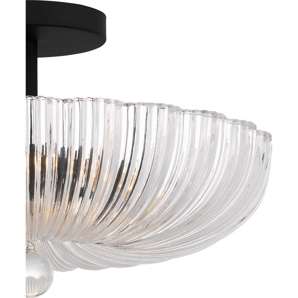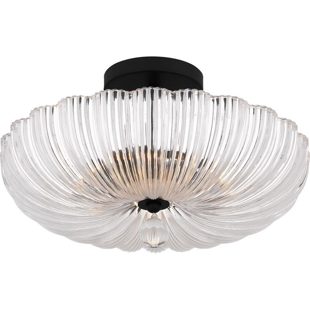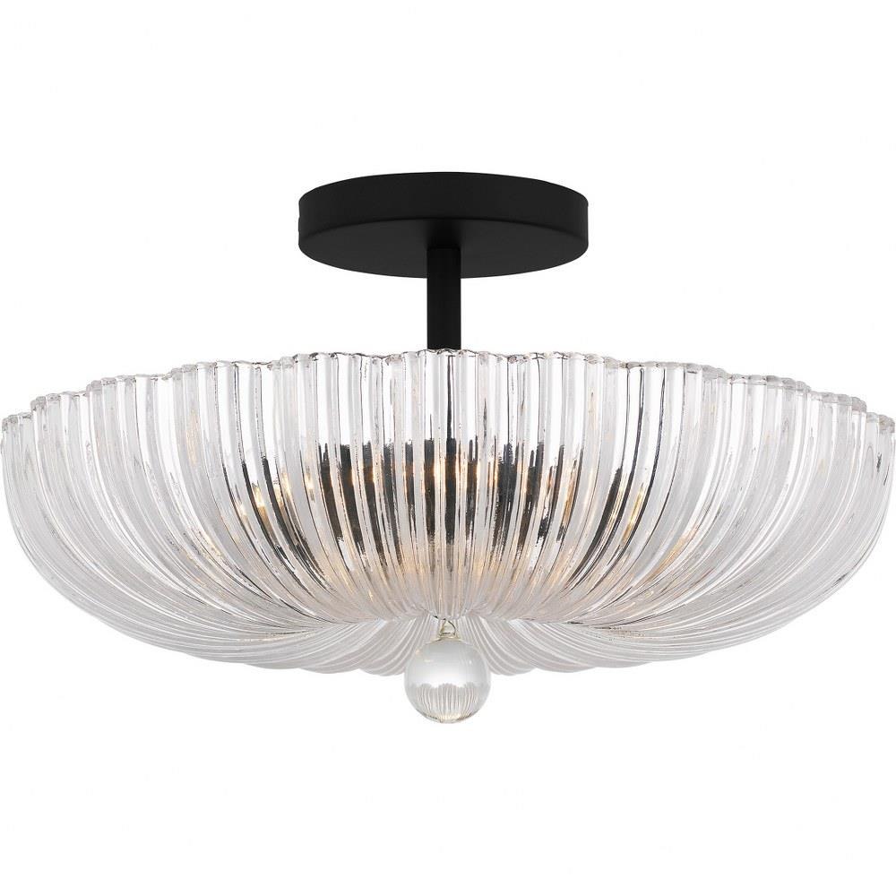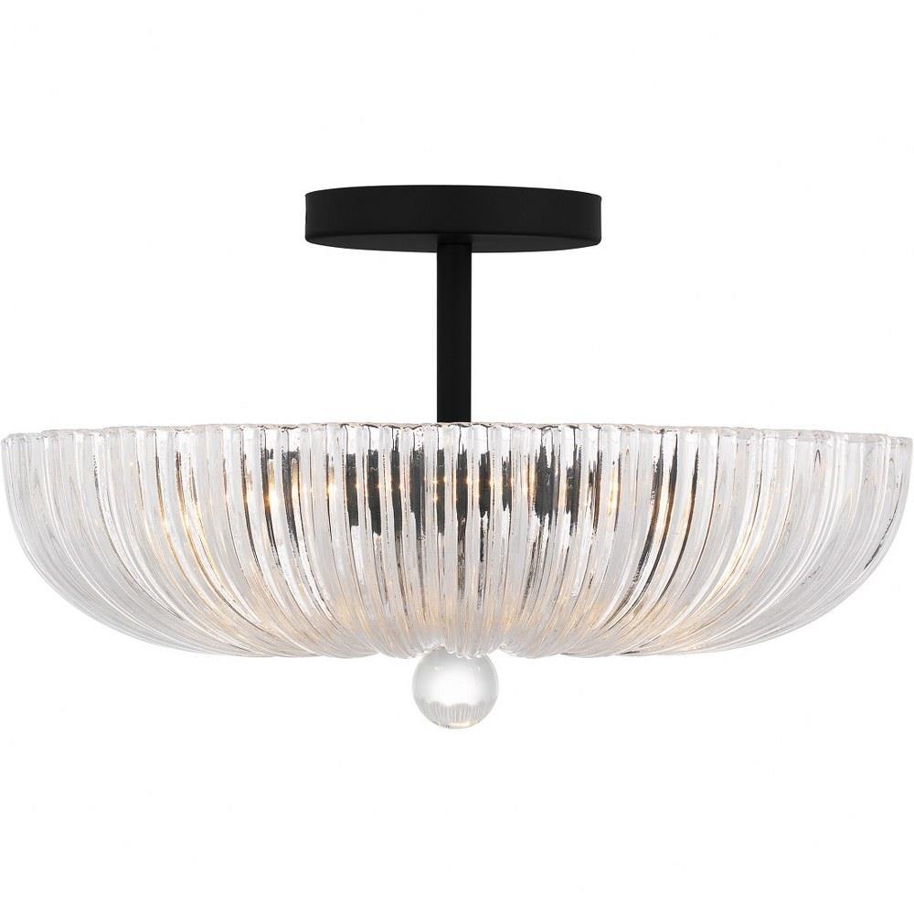 The Belmond semi-flush mount light fits a wide range of design schemes with its classic silhouette and versatile finishes. The scalloped, clear ribbed glass shade creates a beautiful illumination effect and is finished in your choice of brushed gold or matte black. With its simple yet elegant styling, Baylor is a great addition to any traditional foyer, hallway, bathroom, or living space.