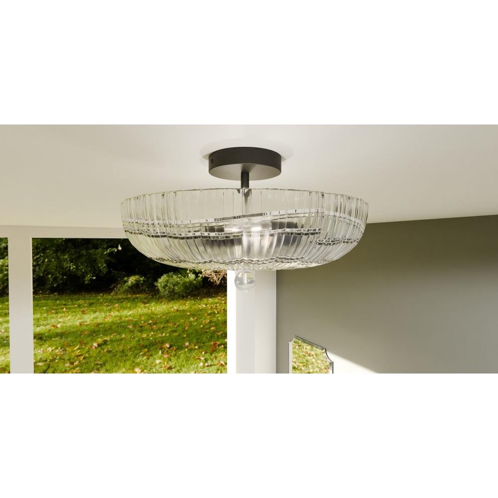• Clear ribbed glass shade features a pretty, scalloped edge detail