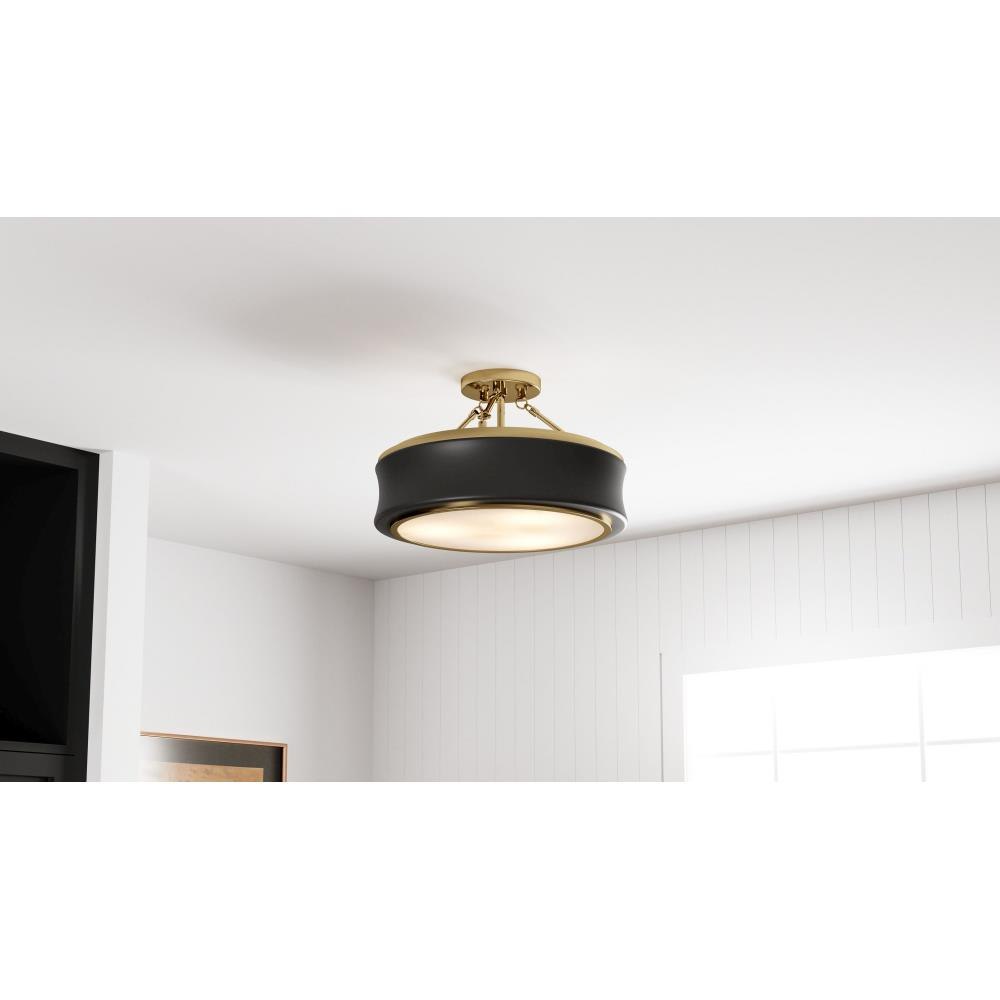 The Dylan semi-flush mount light exudes modern elegance with its sleek design and sophisticated finishes. Featuring a matte black frame with striking gold accents, this fixture adds a touch of luxury to any room. The bottom of the light is adorned with a beautifully textured glass that softens the illumination, creating a warm and inviting ambiance. Perfect for living rooms, bedrooms, or hallways, Dylan is a great choice for modern interiors.