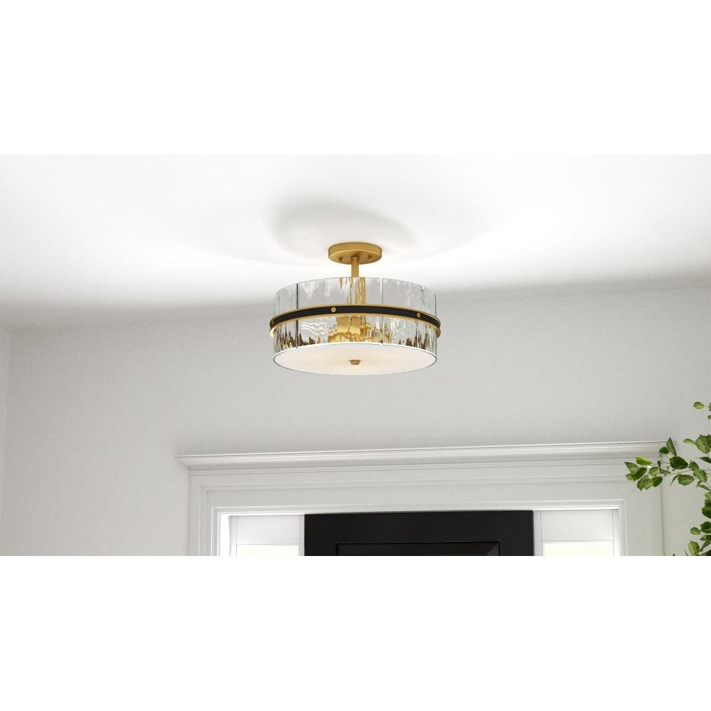 Enhance your space with the Reagan collection, offering both semi-flush mount and pendant light options that bring industrial charm and sophistication to any room. Reagan features a striking brushed weathered brass finish accented with matte black details, creating a bold contrast that highlights its industrial style. Each fixture is complemented by a clear water glass drum shade, adding texture and visual interest while providing a beautiful, diffused illumination.