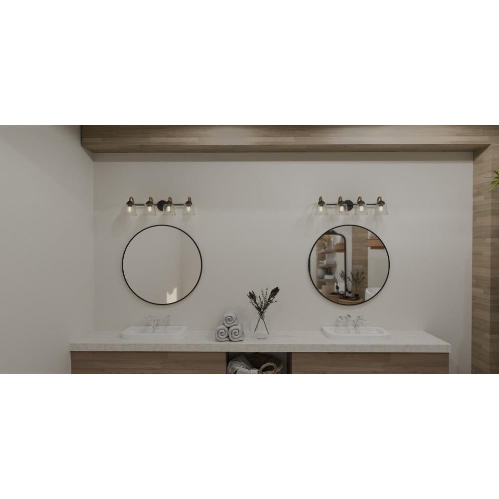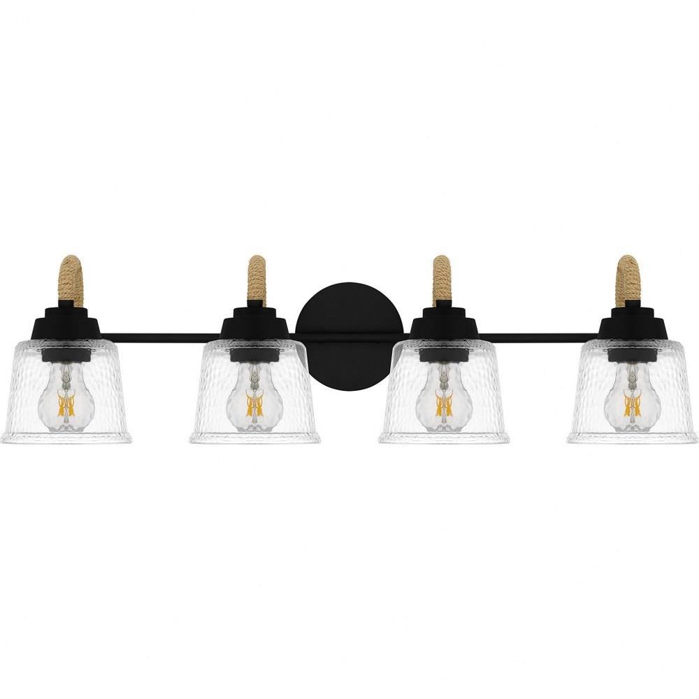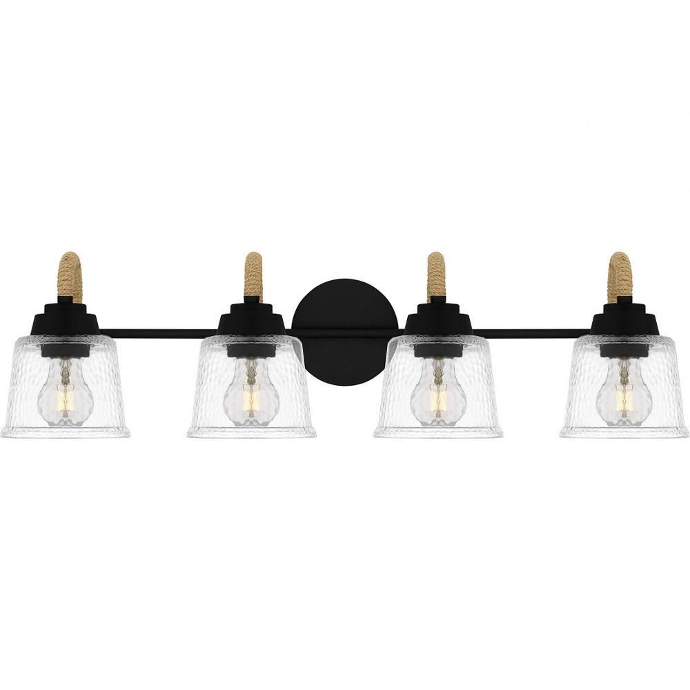 Upgrade any bathroom vanity with the addition of Seabreeze. This coastal-inspired bath light collection features clear hammered glass shades and a matte black finish. A natural looking arm takes the place of traditional metal, adding a nautical feel. Install Seabreeze with shades facing upwards or downwards, whichever best suits your unique space.