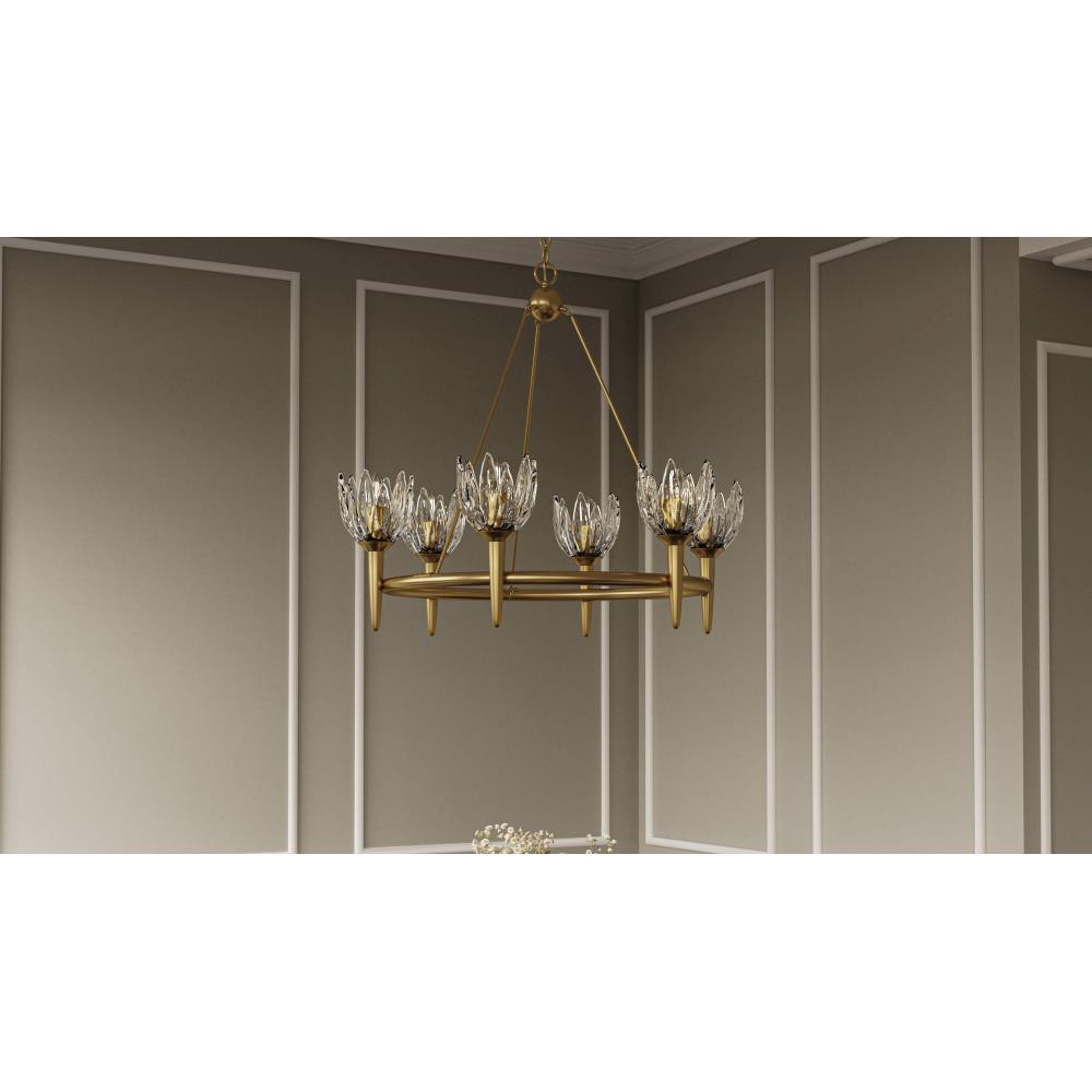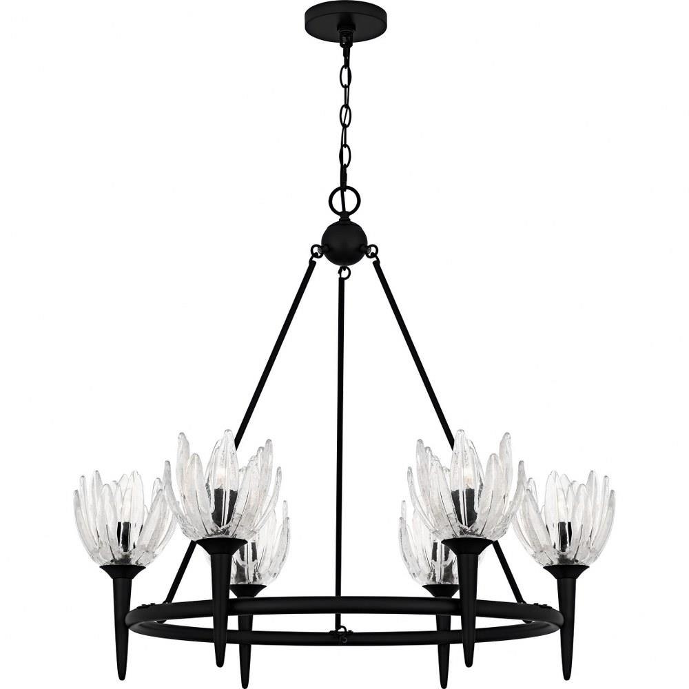 The Shea collection exudes traditional style with a touch of artistic elegance, featuring handmade glass shades that resemble delicate flower petals. Available as a chandelier or a wall sconce, this collection offers versatile options to enhance your home’s decor. Each piece is available in either a brushed gold or matte black finish, providing a sophisticated contrast to the clear glass shades. Due to the handmade nature of the glass, slight variations add unique character to each fixture.