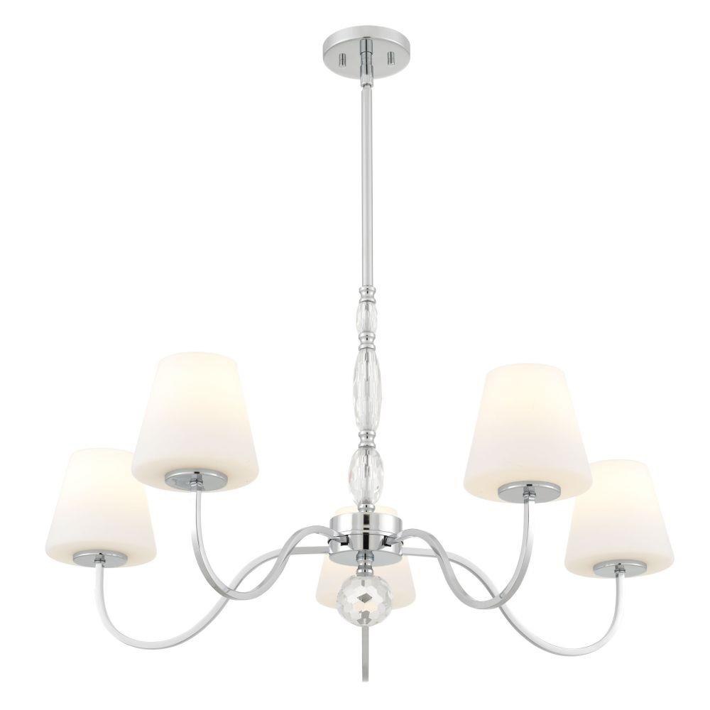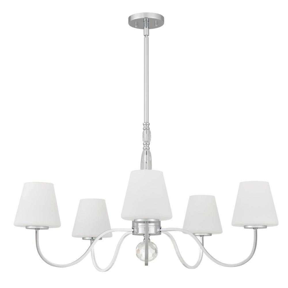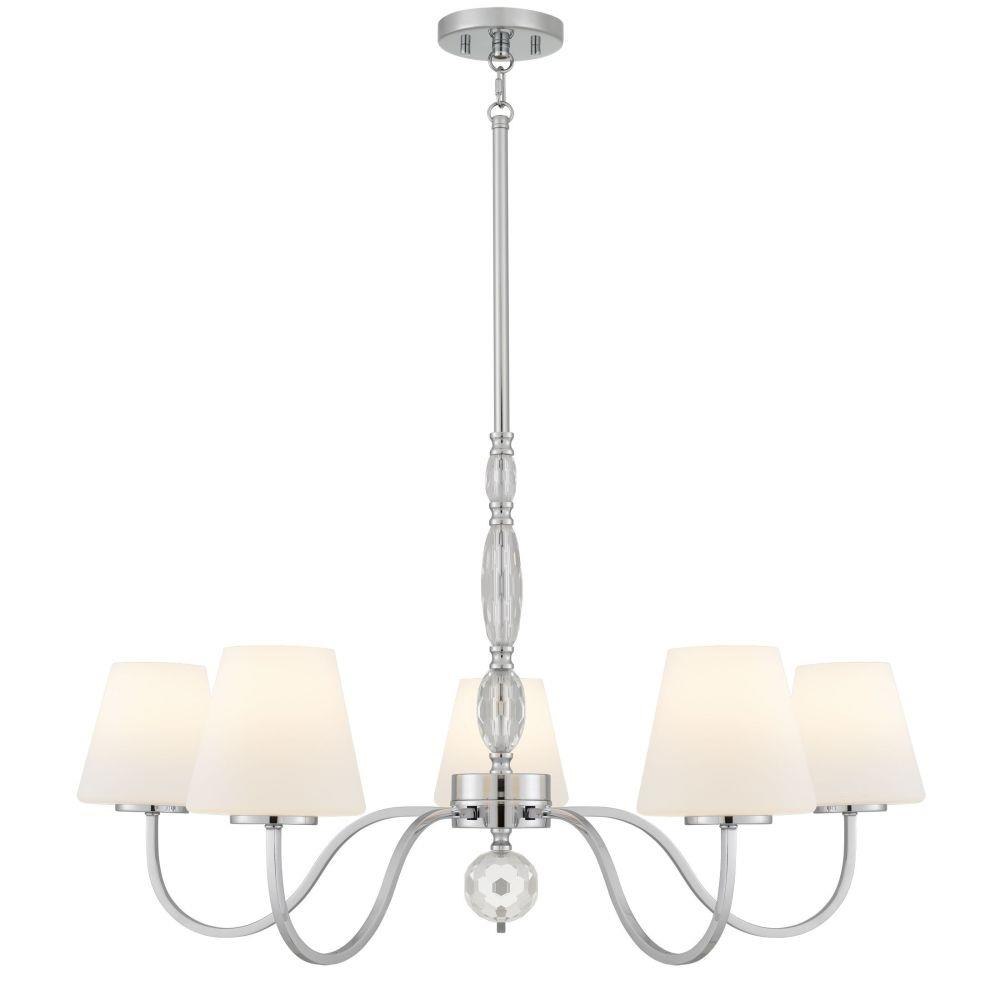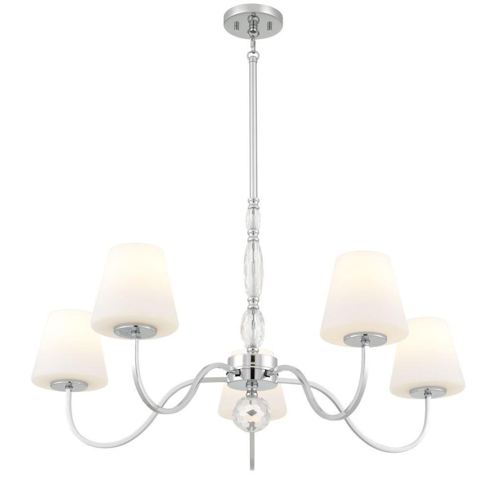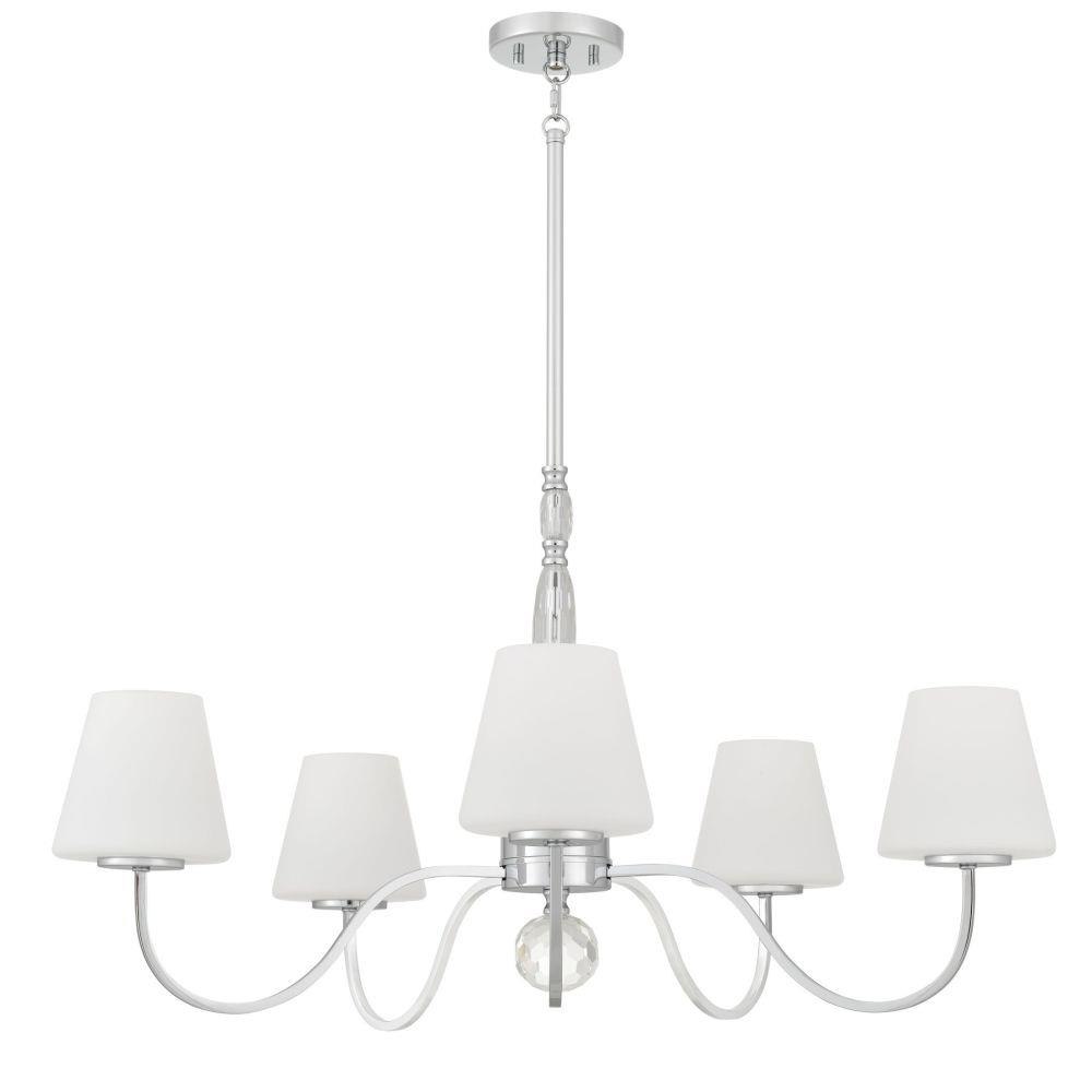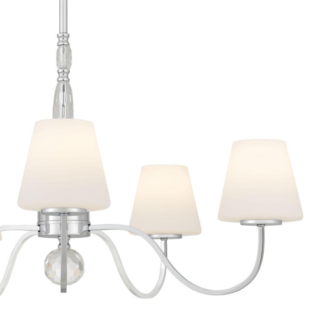 Graceful curves, gleaming polished chrome, and soft, glowing shades define the romantic charm of the Stone Collection. The classic chandelier and wall sconce feature opal etched glass, while the linear chandelier is dressed in white linen fabric for a touch of elegance. Chandeliers include a dual mounting system—choose a clean, rod-to-canopy look or opt for the chain-loop-chain for easier installation. Timeless, luminous, and versatile, Stone brings classic beauty to any space.