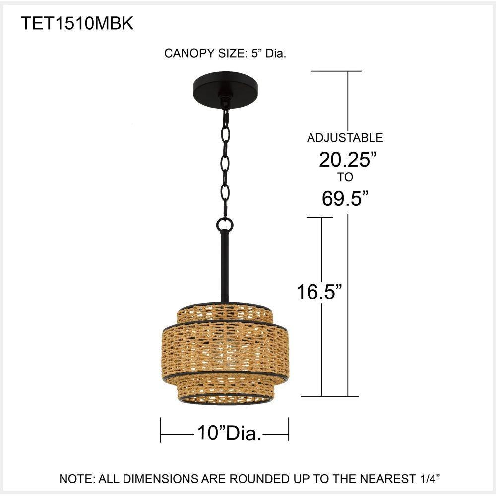 Part of the Quoizel Naturals collection, the Teton series brings coastal charm and natural textures to any space. Its classic drum silhouette is layered with subtle details, while the natural rope-wrapped shade adds depth and visual interest to the clean matte black frame. Available as a pendant, mini pendant, or semi-flush mount, Teton delivers relaxed, understated elegance for kitchens, dining areas, or cozy corners throughout the home.