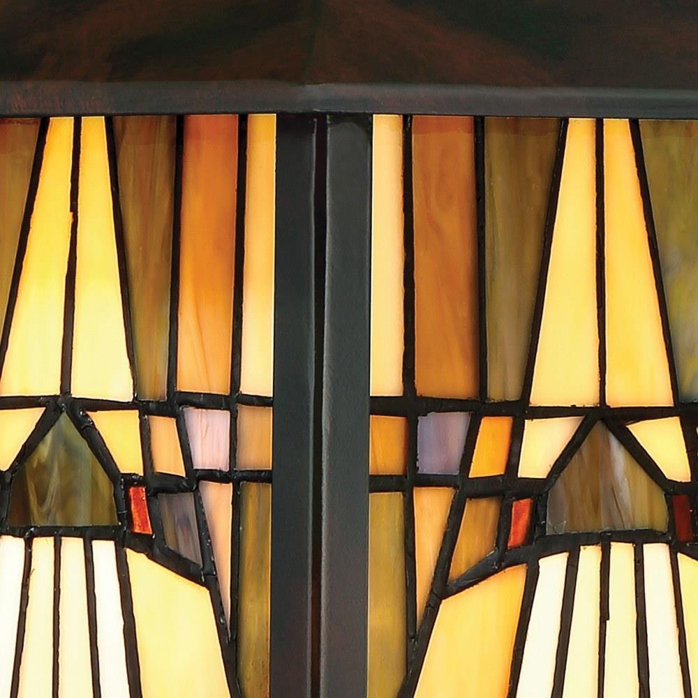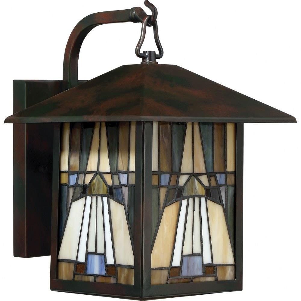 Inglenook - VA Valiant Bronze Finish, Medium Wall Lantern: A classic geometric Arts & Crafts piece with handcrafted art glass in shades of sapphire blue, warm honey, amber and cream. Arts and Crafts is an enduring style that honors the tradition of fine craftsmanship and attention to detail. Product Design Style: Transitional Product Finish: VA - Valiant Bronze Product Electical: 1-100W, A19 MED (23W CFL) Product Shade: Shade 1: G12947PA Contains 38 pieces.