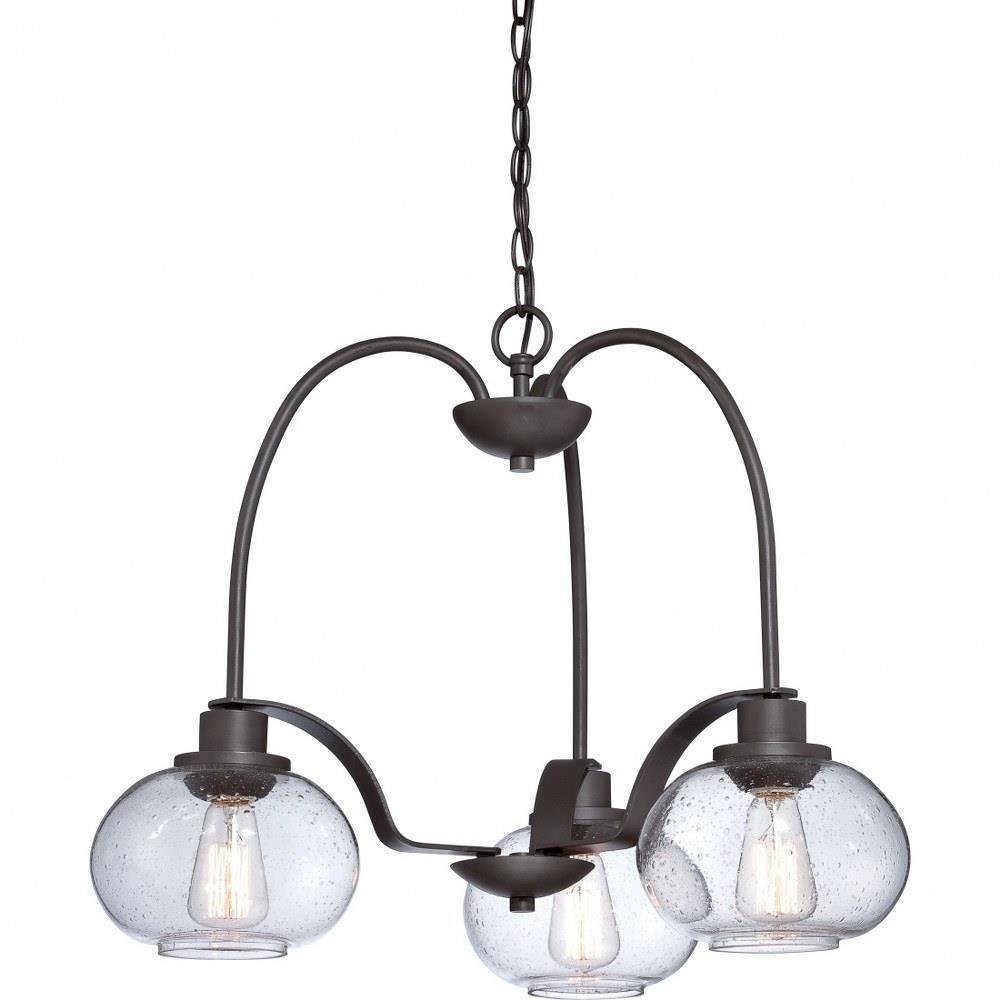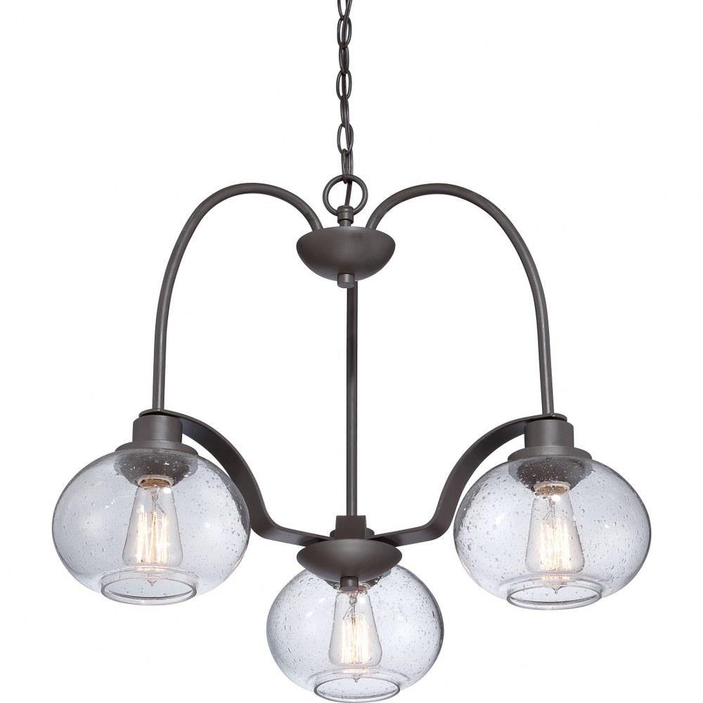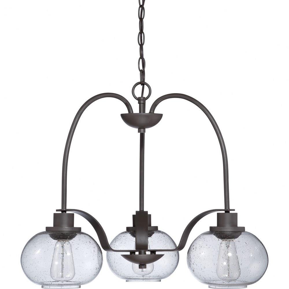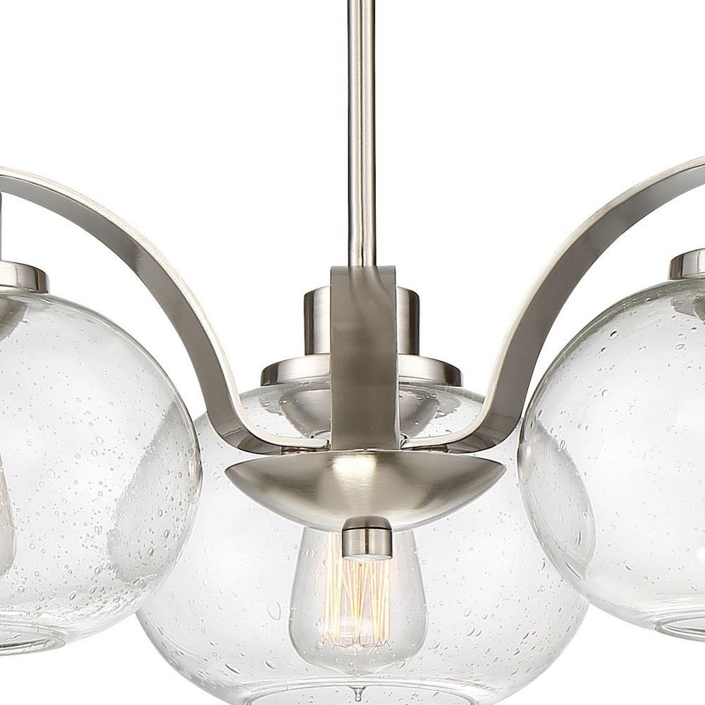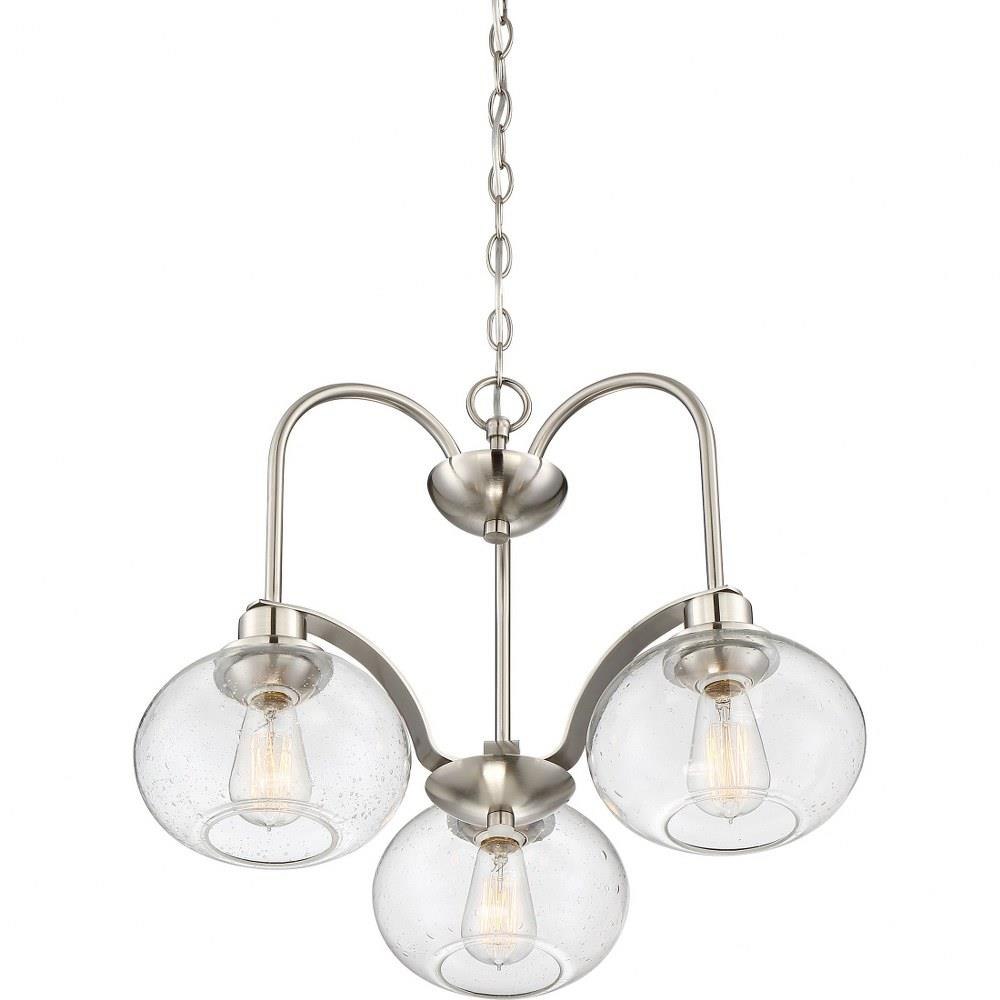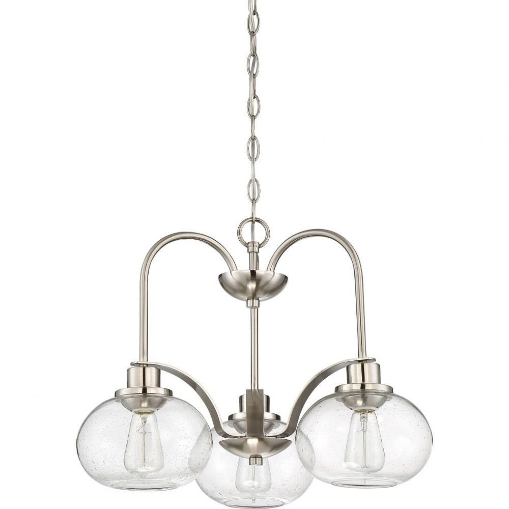 Trilogy - BN Brushed Nickel Finish, Dinette Chandelier With 3 Lights: Trilogy pays homage to Thomas Edison with a vintage inspired filament bulb that is not only nostalgic but also very chic. With the old bronze finish and the clear seedy glass shade Trilogy brings old world style to modern elegance. On trend and classy.