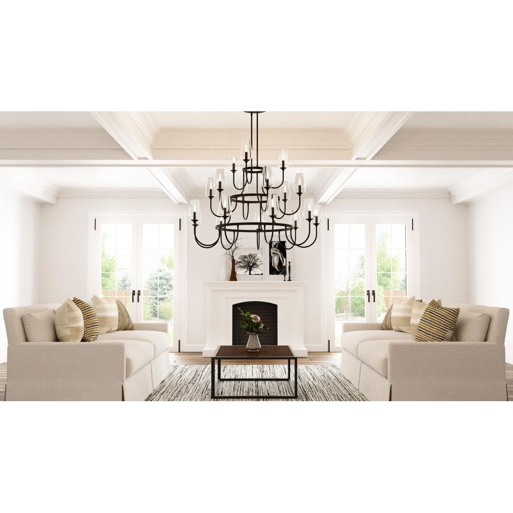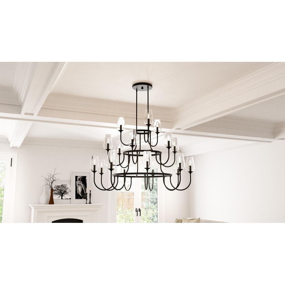 • Matte black finish enhances the transitional chandelier design