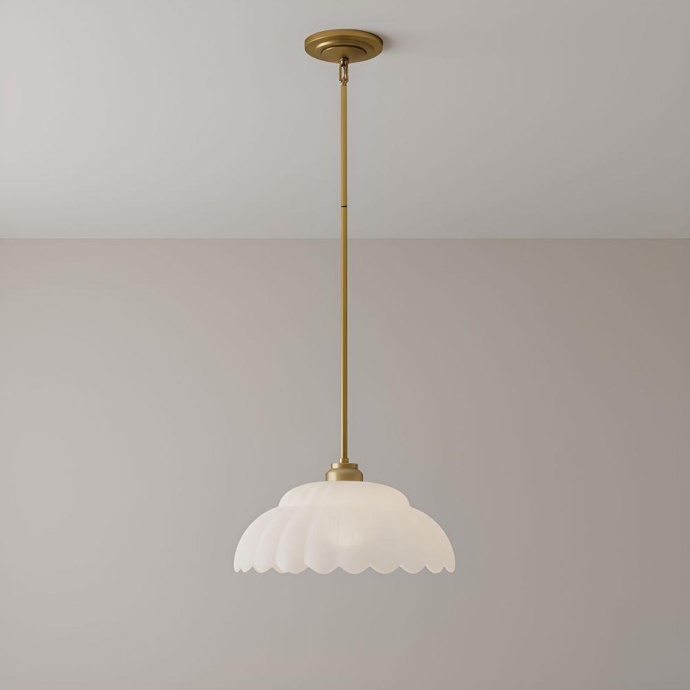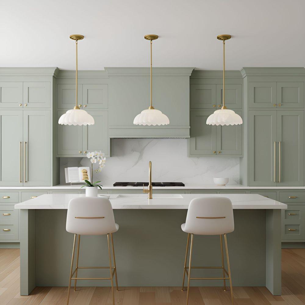 The Whitecap Collection captures a sense of soft elegance with its scalloped glass and graceful silhouette. Gentle curves and glowing finishes create a light that feels warm, inviting, and effortlessly refined. The semi-flush mount features brushed gold paired with alabaster glass, ideal for lower ceilings with style. The pendant and chandelier are offered in both brushed gold with alabaster glass for a fresh, luminous touch or mottled cocoa with amber glass for deeper, moody warmth. With a blend of modern romance and classic charm, Whitecap transforms everyday spaces into something truly special.