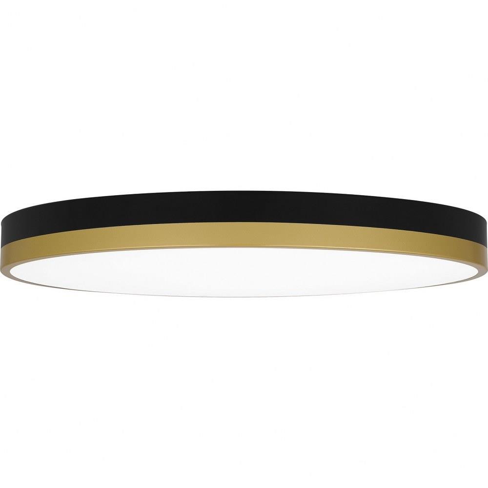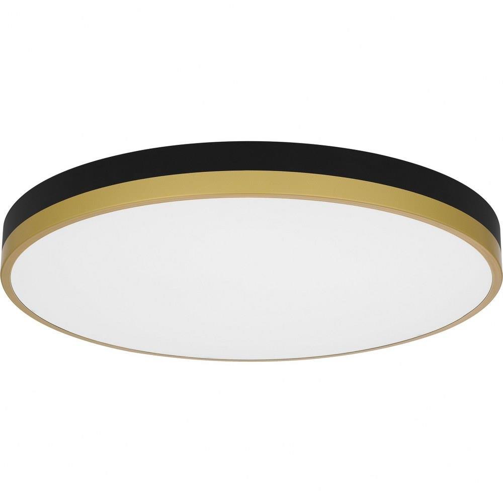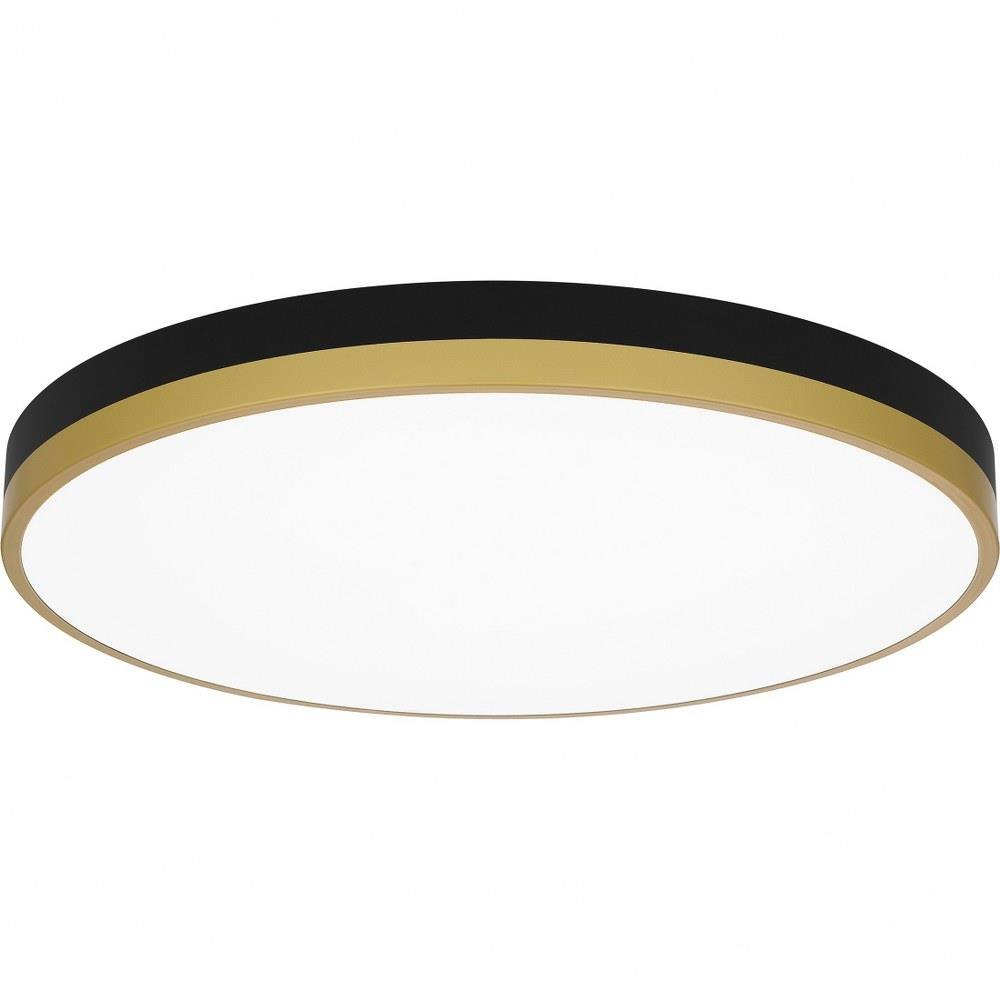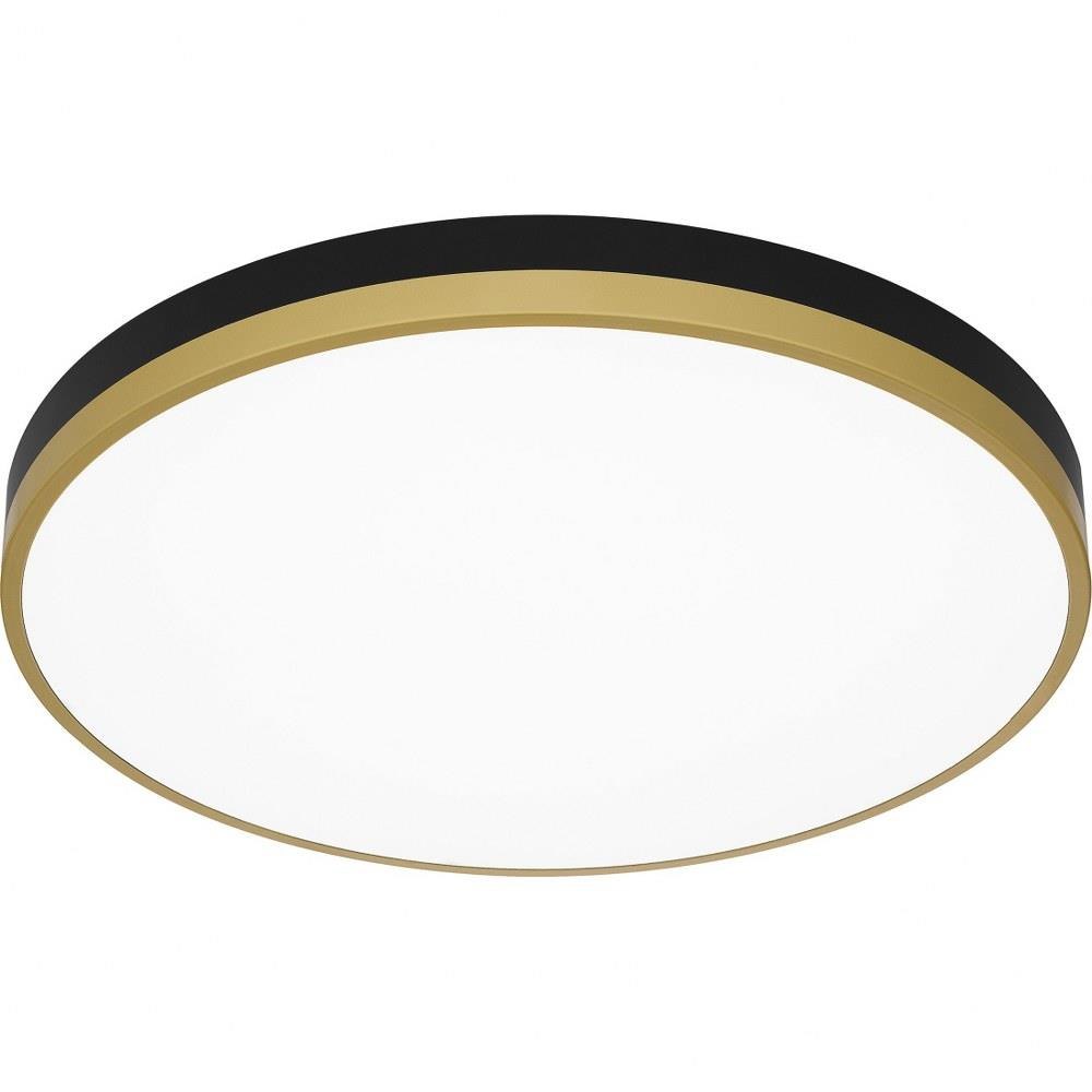 The Weldin flush mount is as smart as it is sleek. This design features an integrated light source for a dependable glow in entryways, hallways, or home offices. Two color palettes — either matte black and gold, or matte black and white — complement a multitude of interior design styles.Matte black and white palette offers a clean, bold contrast.Frosted glass shade creates soft illumination.Durable steel construction is built to last and offers a clean, polished look.Complements a variety of contemporary, modern, and mid-century styled interiors.Energy efficient light source.