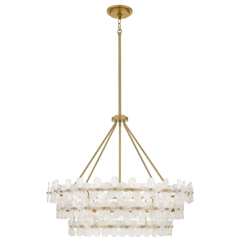 The Wright Collection is a celebration of whimsy and elegance. Each piece pairs a radiant brushed gold finish with delicate clear textured glass shaped like blooming petals, casting a soft, sparkling glow. Whether illuminating a dining room, entryway, or kitchen island, Wright enchants the space with its playful sophistication—turning everyday moments into golden hours. Romantic, radiant, and full of charm, it’s lighting that feels like a bouquet in bloom.