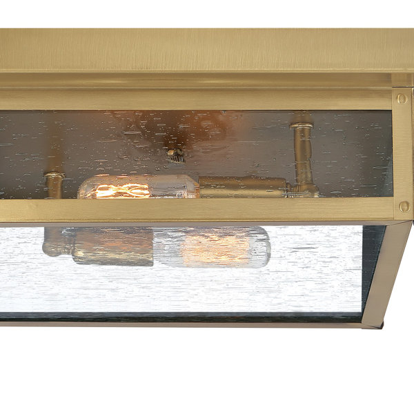 This flush mount brightens up your front door, screened-in porch, or bathroom in a contemporary style. Rated for damp areas, this light can be installed in covered outdoor areas or steamy bathrooms. It's made from metal and features a clean-lined rectangular design. The open frame has beveled glass panels that encase the two 40W candle bulbs (not included). We love that this fixture is dimmable, so you can always have the right amount of light all day and night.