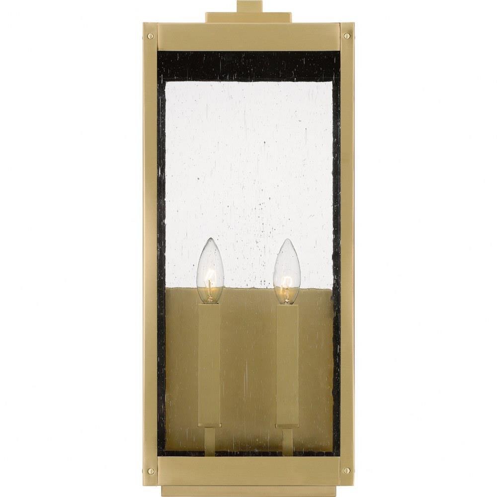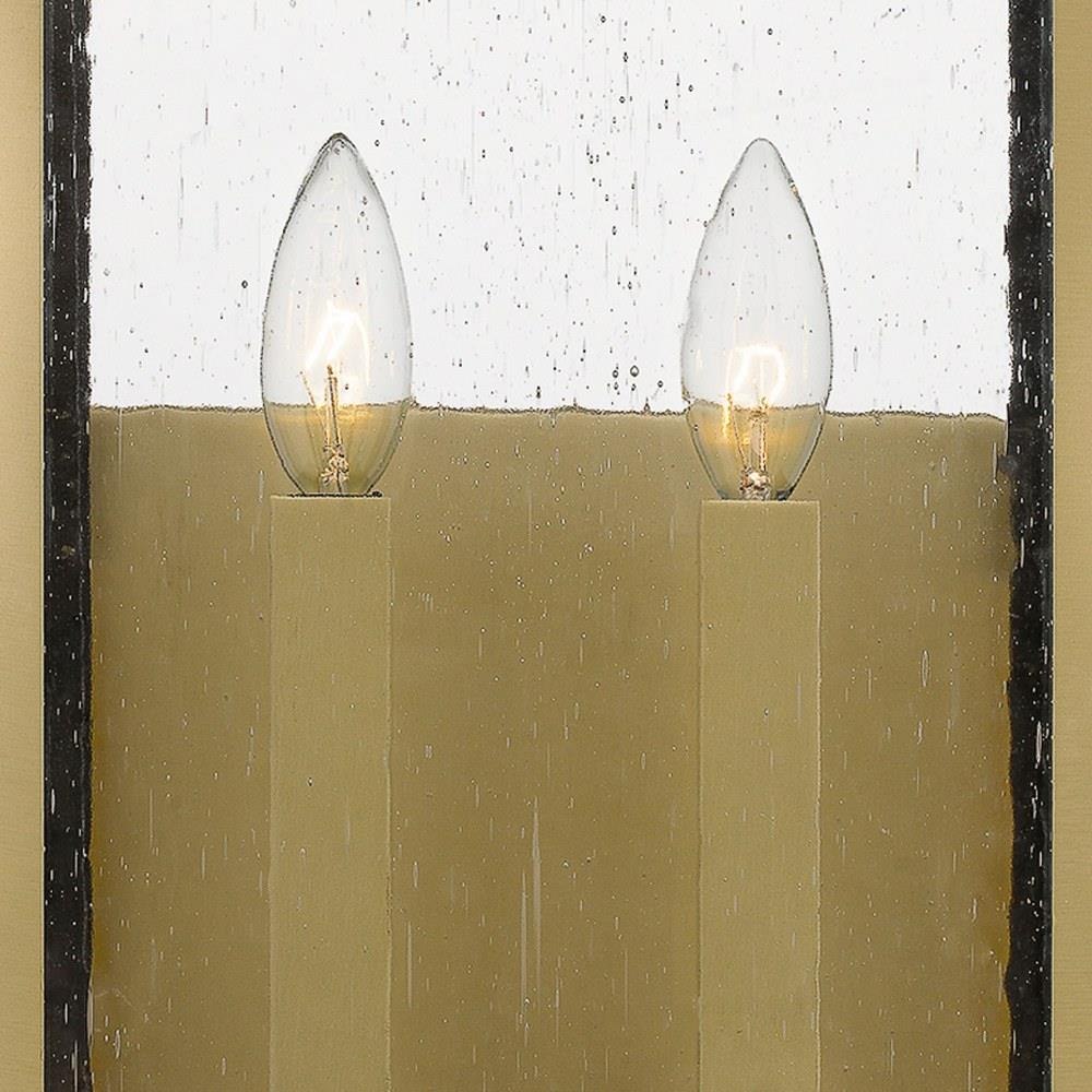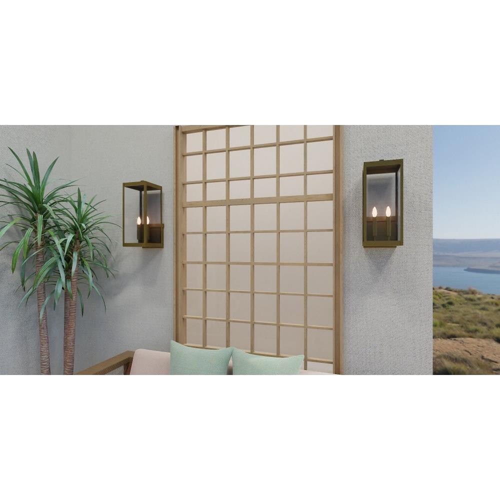 The clean lines and hand-riveted accents make the Westover outdoor lantern collection a modern industrialist's dream. A long rectangular framework provides an unobstructed view of the lantern's sleek interior. The choice of earth black, antique brass, industrial bronze, stainless steel, or western bronze further enhances the versatility of this refined collection. The earth black, stainless steel, and western bronze finishes show off clear beveled glass panels while the antique brass and industrial bronze options flaunt seedy glass. Use the Westover wall lantern in pairs to flank a door or on its own for an asymmetrical look.