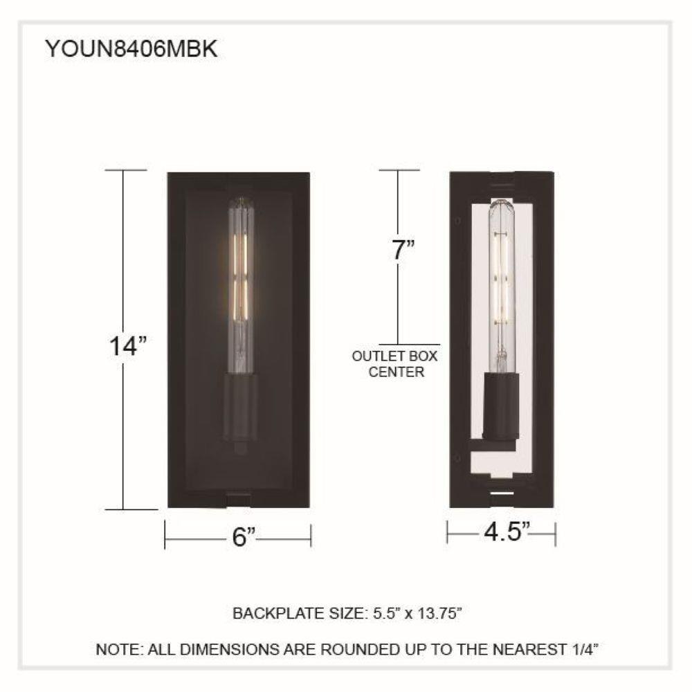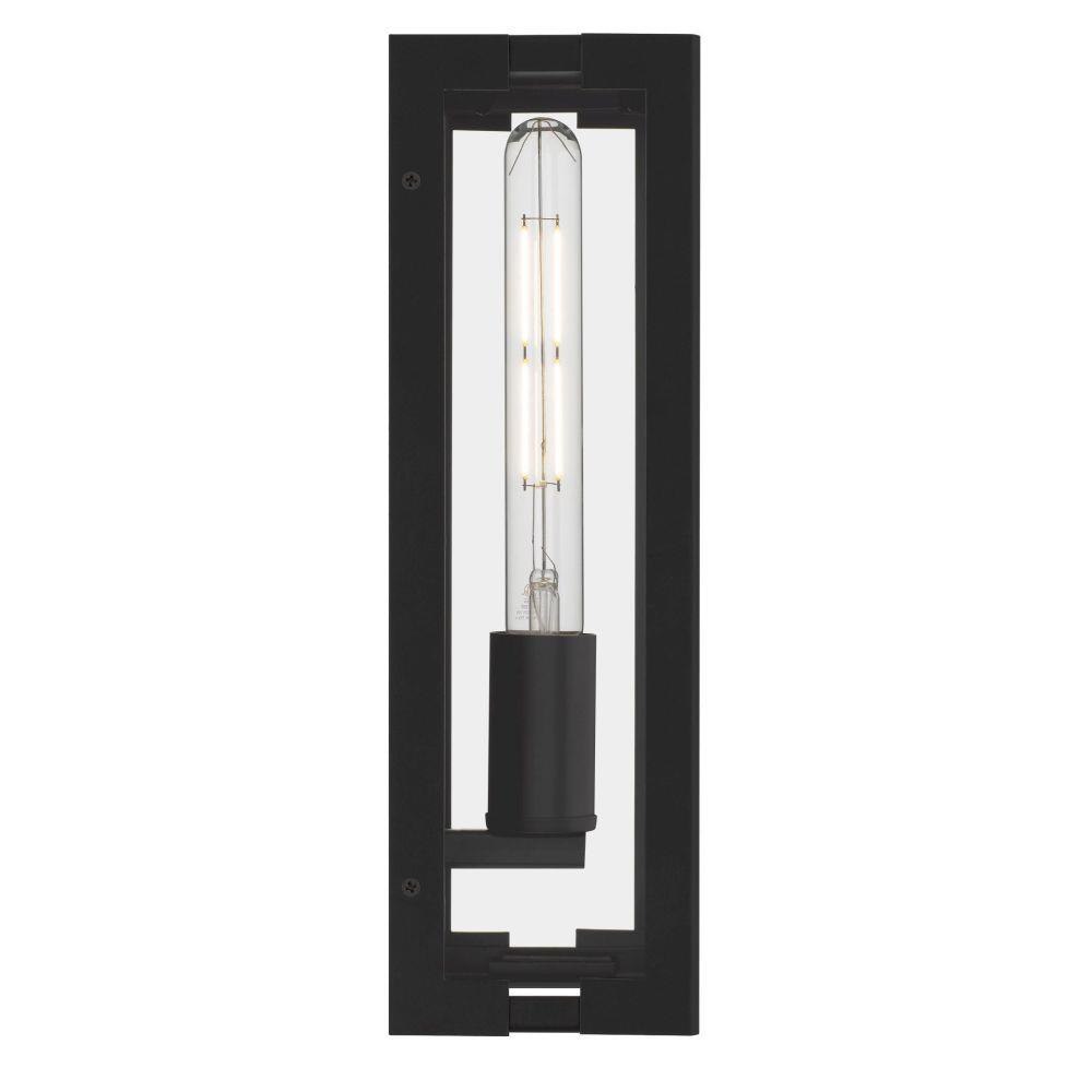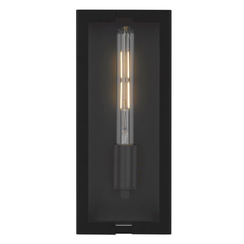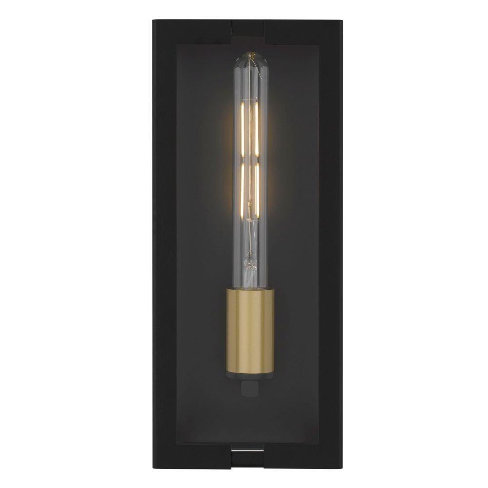 Sleek yet soulful, the Young outdoor wall lantern pairs modern geometry with timeless charm. Its matte black frame and clear tempered glass create a crisp, architectural silhouette, while two included sets of candle covers—matte black for understated elegance or gold for a warm, inviting glow—let you tailor the mood. The distinctive slot crossbar adds subtle visual intrigue, and the versatile design allows the lantern to shine with the bulb facing up or down. Whether gracing an entryway or lighting a garden path, Young brings a quiet sophistication that glows day and night.