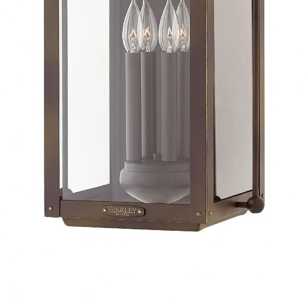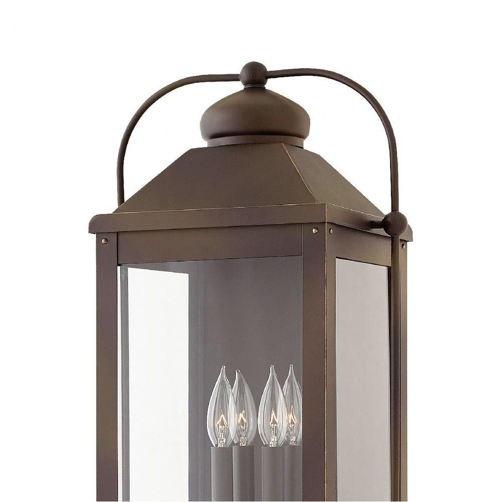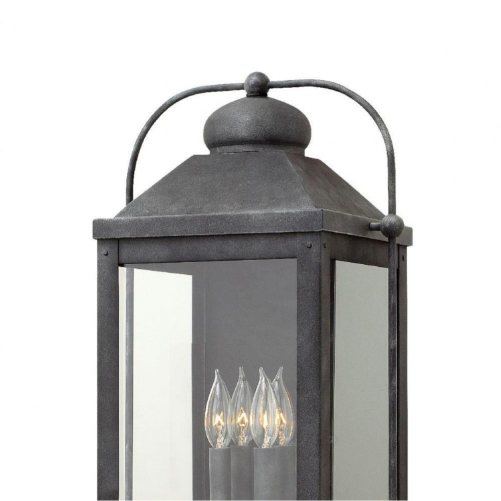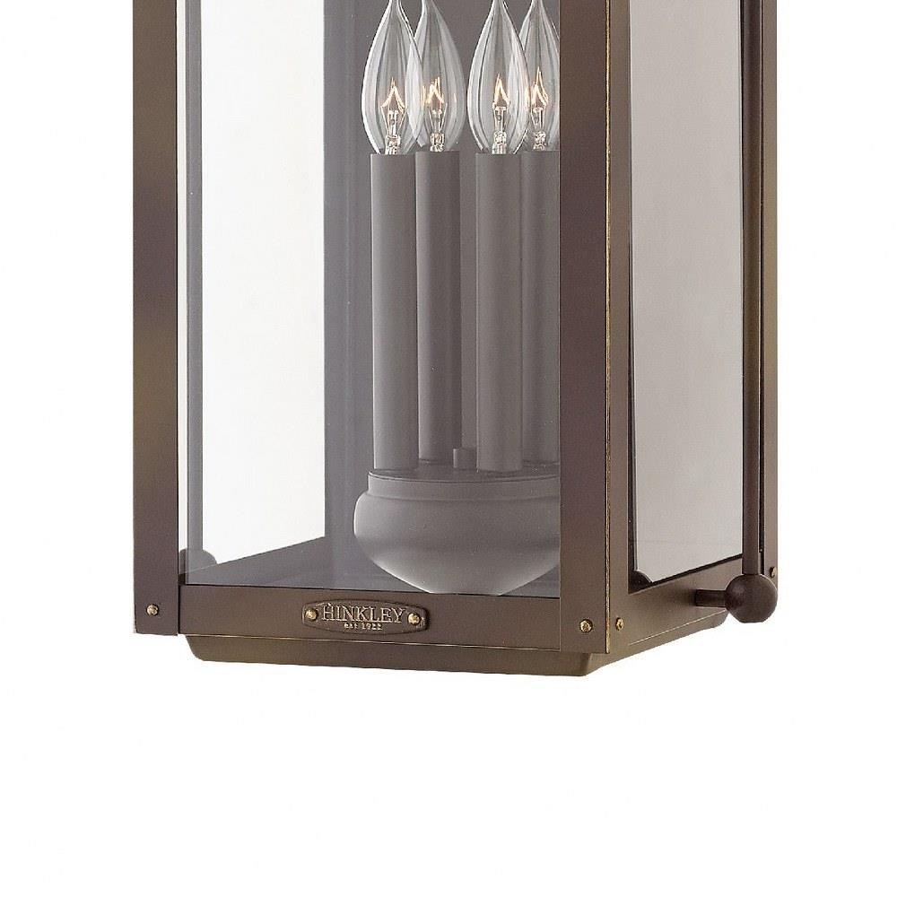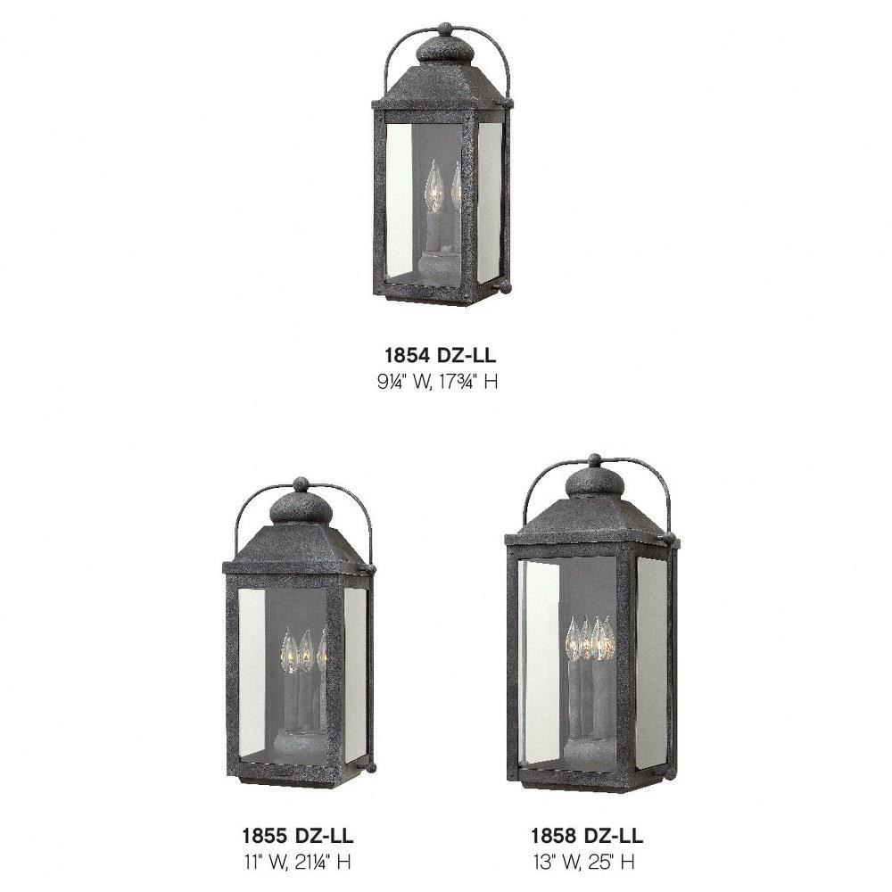 Anchorage is an early American lantern design crafted of solid aluminum to reflect a bold yet refined silhouette. The Aged Zinc or Light Oiled Bronze finish and clear glass complement the long clean lines, elegant arched carriage handle and sturdy knobs, resulting in a vintage style with classic charisma.Our Estate Collections boast a breadth of fixtures defined by coordinating composition, enduring architecture, and time-honored craftsmanship, designed to meet the needs of expansive properties with extended outdoor living spaces. From the entrance of your driveway to the depths of your backyard, these collections provide cohesive design for stately exteriors. / Suitable for use in wet (outdoor direct rain or sprinkler) locations as defined by NEC and CEC. Meets United States UL Underwriters Laboratories & CSA Canadian Standards Association Product Safety Standards / Classic lines and heritage details complement traditional architecture / 2 year finish warranty / The Heritage Collection encompasses premium outdoor fixtures that pay tribute to the nostalgia of America's past while reinforcing Hinkley's philosophy of timeless, quality design. / Warm rich light bronze tone