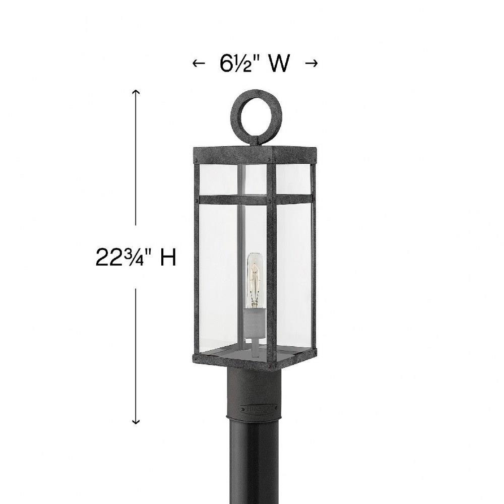 A fusion of chic styles makes Porter a design standout. Merging Modern Farmhouse, Industrial and Arts and Crafts elements, the fine rivet details and a sturdy hanger loop create a stunning and distinctive statement.Innovative Exterior 12-volt solution for all-in-one lamp, lighting and high design look. Transformer is required and sold separately. / Our Estate Collections boast a breadth of fixtures defined by coordinating composition, enduring architecture, and time-honored craftsmanship, designed to meet the needs of expansive properties with extended outdoor living spaces. From the entrance of your driveway to the depths of your backyard, these collections provide cohesive design for stately exteriors. / Suitable for use in wet (outdoor direct rain or sprinkler) locations as defined by NEC and CEC. Meets United States UL Underwriters Laboratories & CSA Canadian Standards Association Product Safety Standards / The stylish Open Air collection includes outdoor-rated chandeliers, pendants and sconces that provide design-conscious solutions to a variety of exterior environments. / LED Bulbs carry a 3-year limited warranty / 12-volt LED vintage filament bulbs included / 2 year finish warranty / Images are for reference purpose only and may not be pictured with the specified LED filament bulb. / Bold and robust dark bronze finish / Variety of stylish fixtures customized with vintage filament bulbs / Offers low voltage semi-permanent solutions for unique areas such as pergolas when paired with low voltage Hinkley transformer / Sophisticated and streamlined design, durable construction and timeless finish complement any architectural style / The Lisa McDennon Collection offers a striking mix of edgy, sculptural silhouettes that incorporate modern, organic elements and luxe materials, brought to life by her innovative and original point of view.