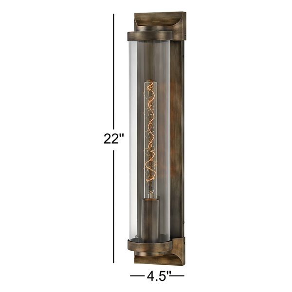 Take the indoor style of statement sconces to your outdoor porch or patio. Drawing inspiration from old world-style designs, this flush mount is made from metal and features cast symmetrical end caps and a clear cylindrical glass shade. Vintage filament bulbs combine with the sleek backplate for a sophisticated look you'll love to show off. This rust-resistant design is safe to use in locations with direct water exposure, and even boasts compatibility with dimmer switches.