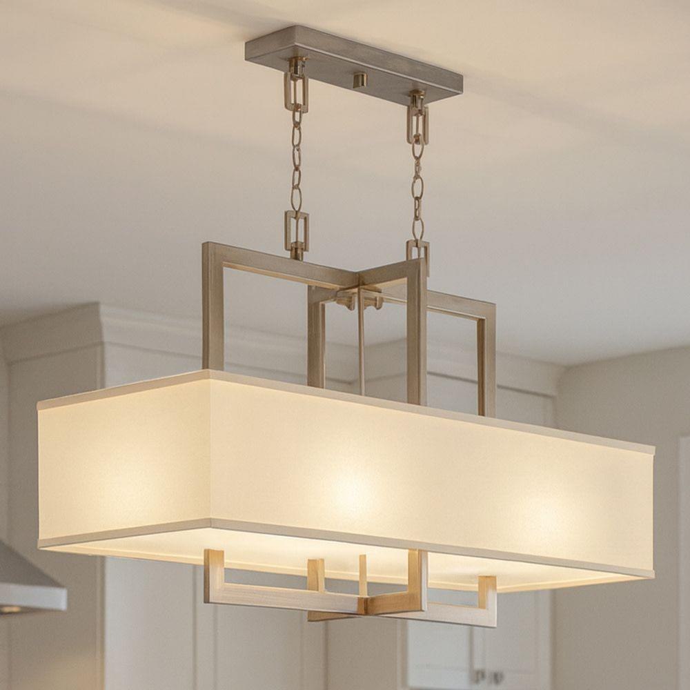 Hampton is a modern transitional design, offering the ultimate in urban sophistication. The minimal, rectangular frame is softened by a contemporary off-white linen drum shade.Suitable for use in dry (indoor) locations as defined by NEC and CEC. Meets United States UL Underwriters Laboratories & CSA Canadian Standards Association Product Safety Standards / Classic gleaming light brass finish / Merging the best of traditional and modern elements, with a sophisticated and streamlined silhouette perfect for any space / Decorative acrylic etched bottom lens.