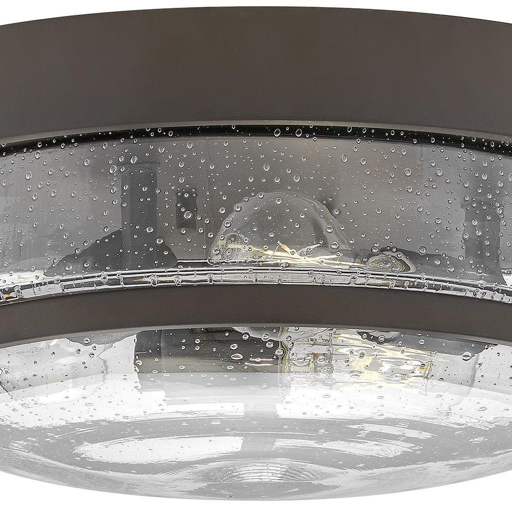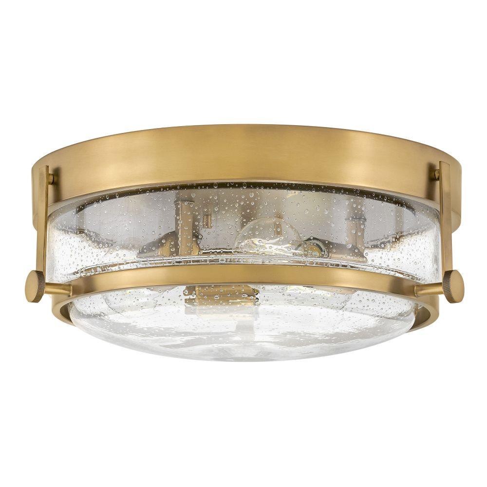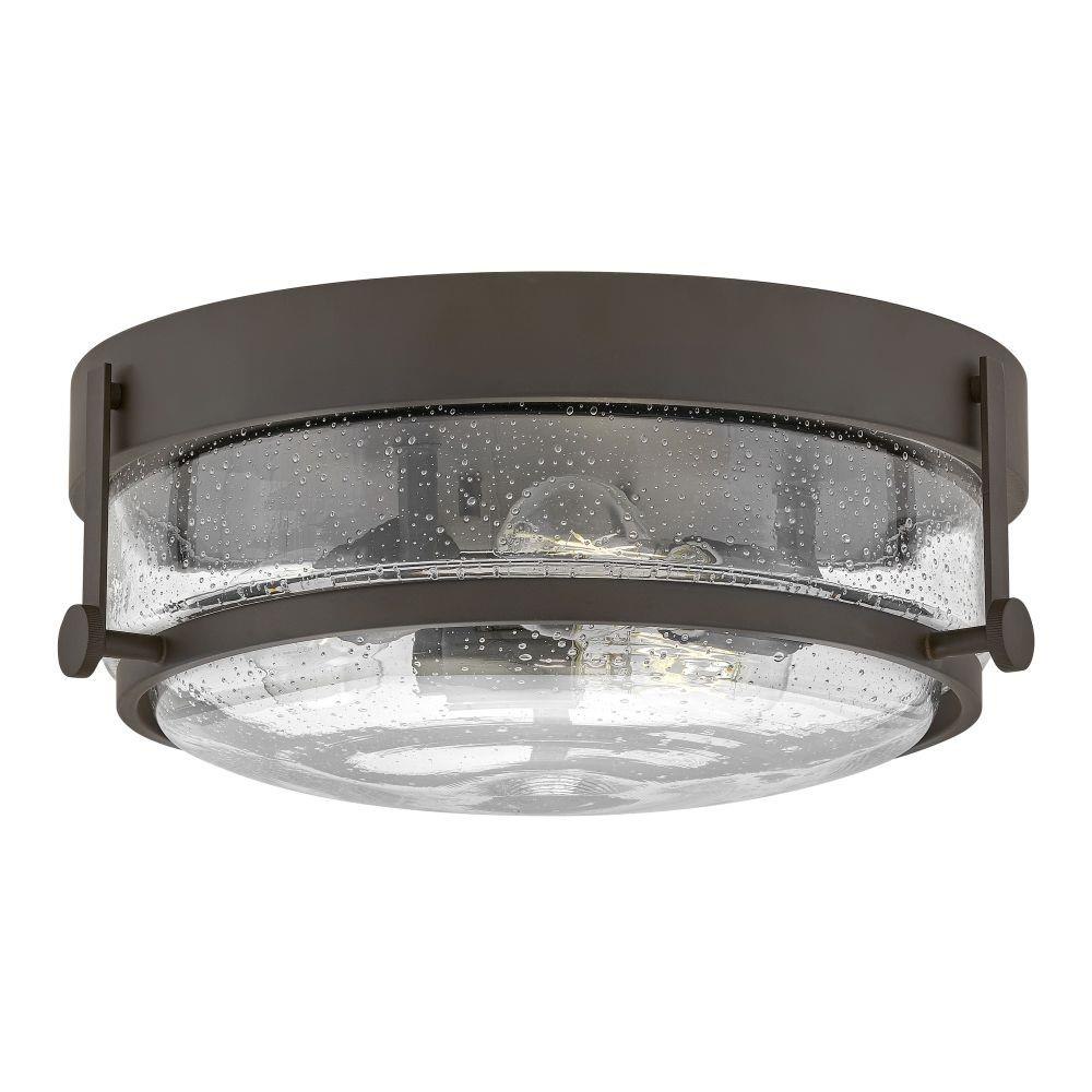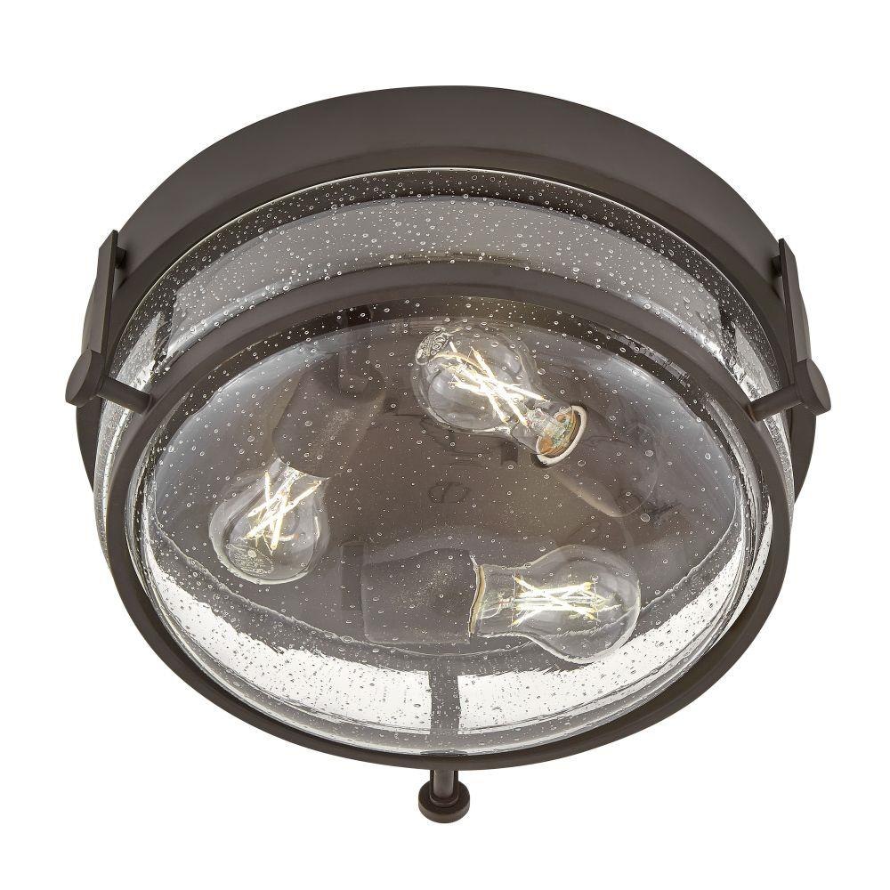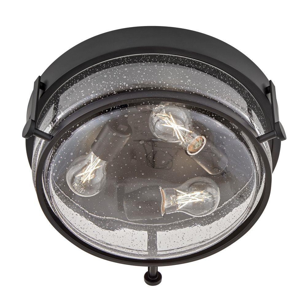 Harper’s sleek, retro design elevates the traditional ceiling mount with a unique clear seedy glass bound by a prominent metal ring and decorative knobs. Available in five classic finishes.