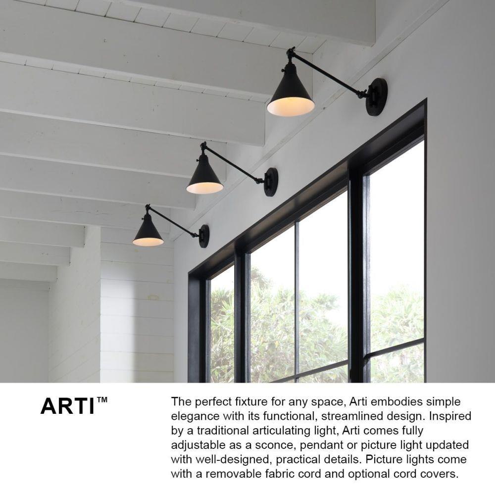 The perfect fixture for any space, Arti embodies simple elegance with its functional, streamlined design. Offering a robust lineup of fixture silhouettes, every aspect of the Arti family is adorned with practical features for a seamless integration into any room.Suitable for use in dry (indoor) locations as defined by NEC and CEC. Meets United States UL Underwriters Laboratories & CSA Canadian Standards Association Product Safety Standards / Merging the best of traditional and modern elements, with a sophisticated and streamlined silhouette perfect for any space / 21" Extension when fixture is fully extended. / Fully adjustable both left or right and up or down. / All dimensions listed are as shown. / Features On/Off switch / Optional cord cover available, 6938BK / Striking black finish enhances design / Includes on/off switch and can be hardwired or mounted with plug-in cord / Can be hard wired or mounted with fabric covered plug-in cord.
