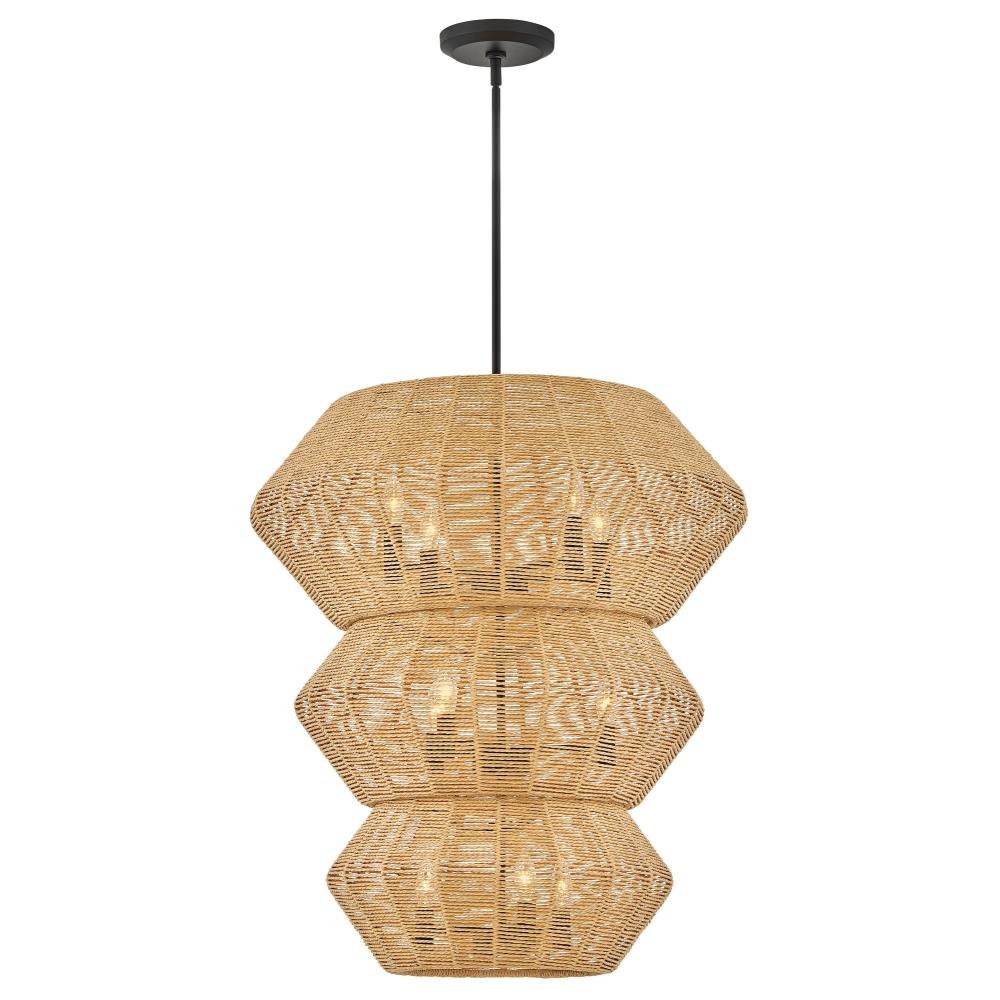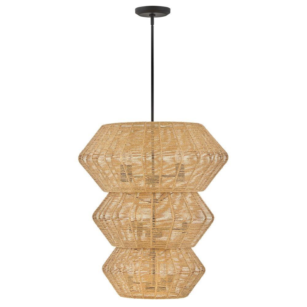 Luca's coastal vibe is permeated with an exotic appeal. The bold pendant showcases a robust, woven drum shade, and a fully finished cluster for plenty of functional light offered in a variety of finish options. Luca is part of the Lisa McDennon Collection.